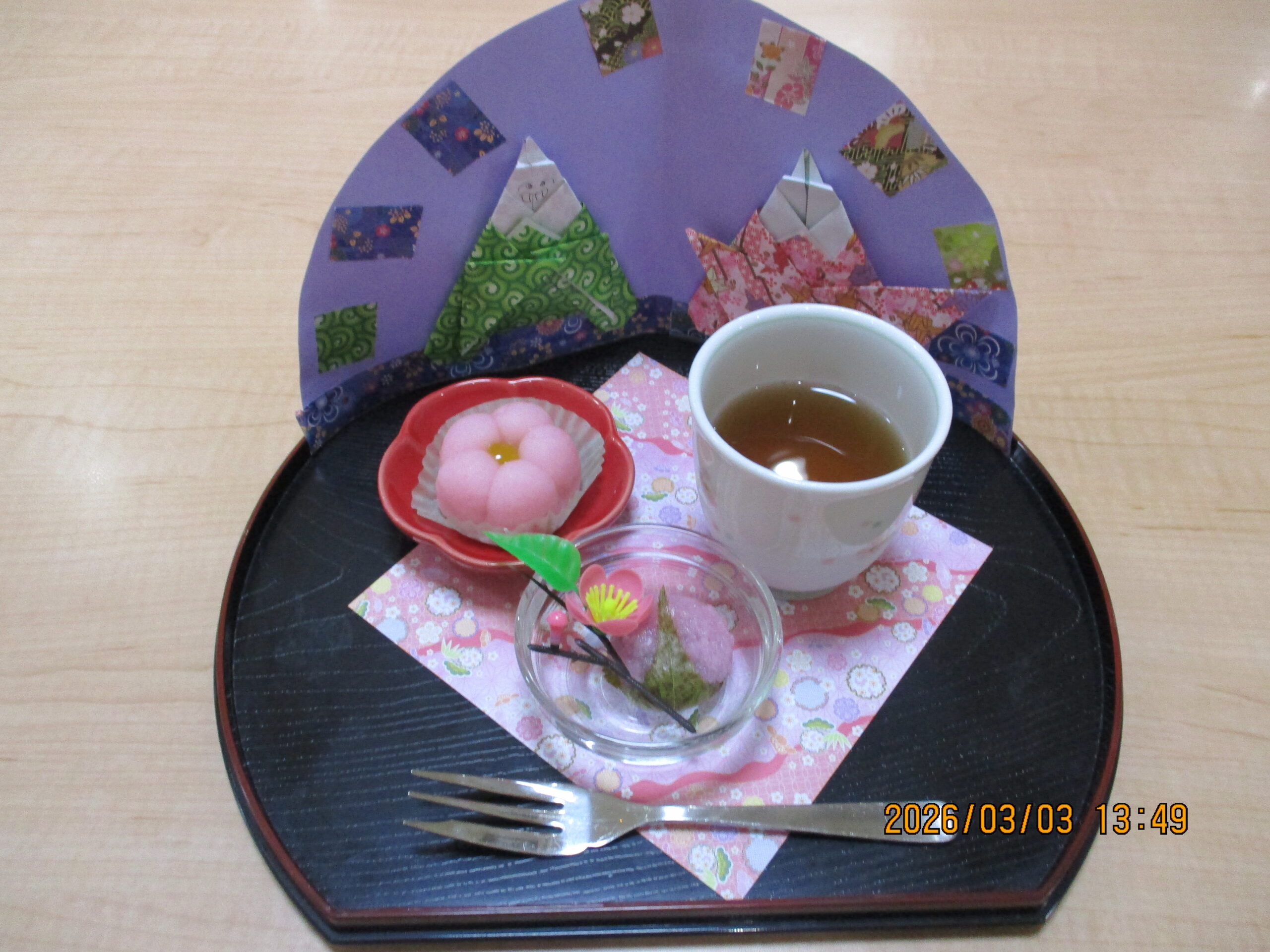 おやつは、お雛祭りらしい可愛い和菓子をご用意しました♪