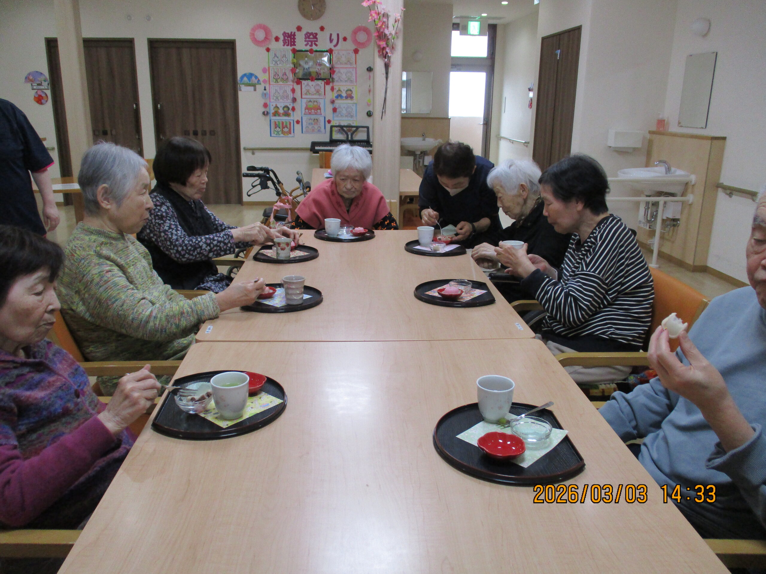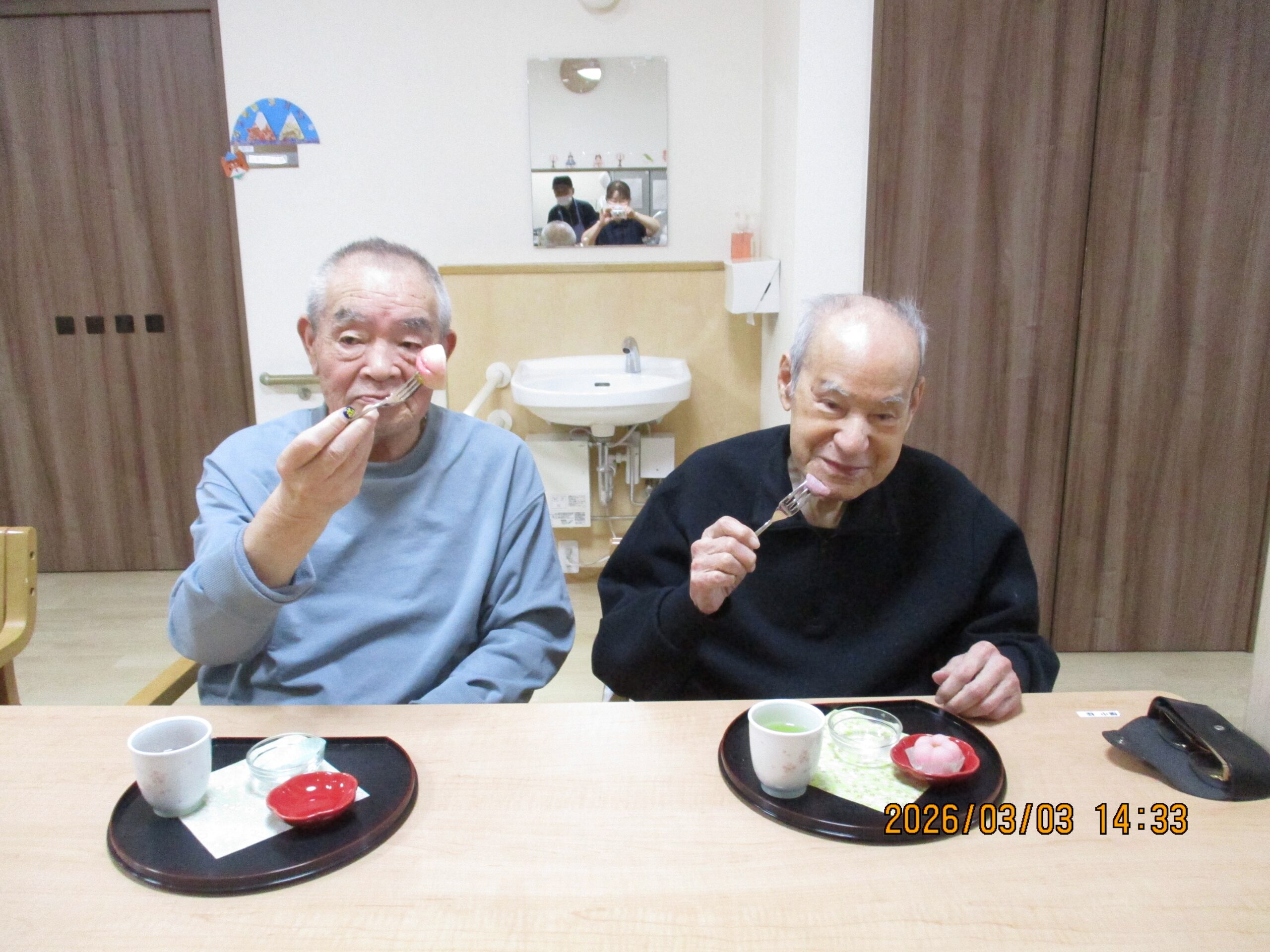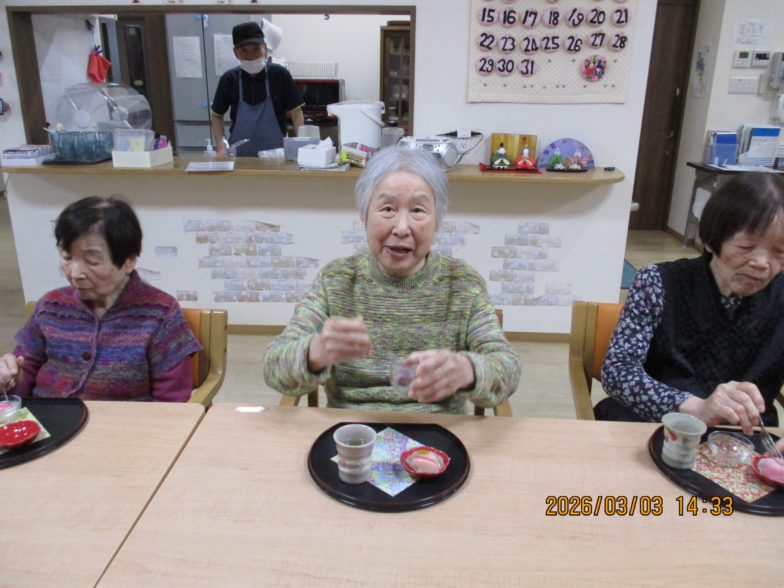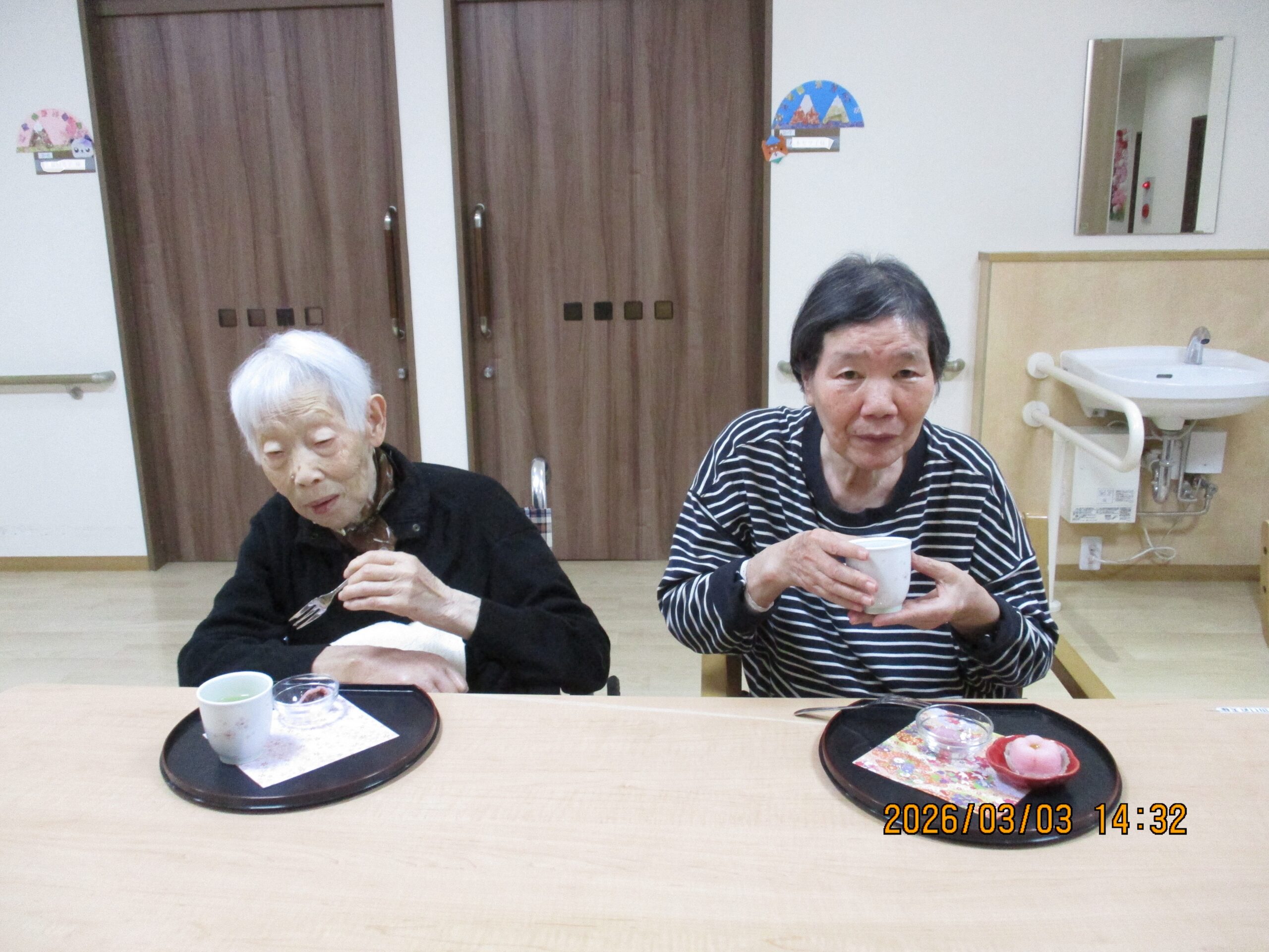お菓子を堪能しながら、雛祭りの思い出話に花を咲かせます🎎