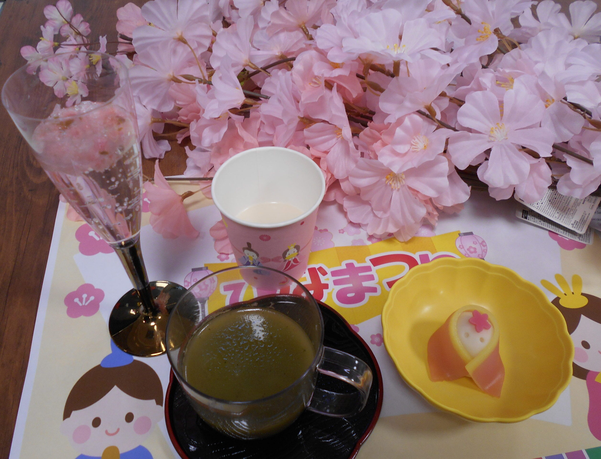 ユニットリーダーのKさん特製「抹茶ようかん・桜の塩漬け入りサイダー」も提供されました🌸💕