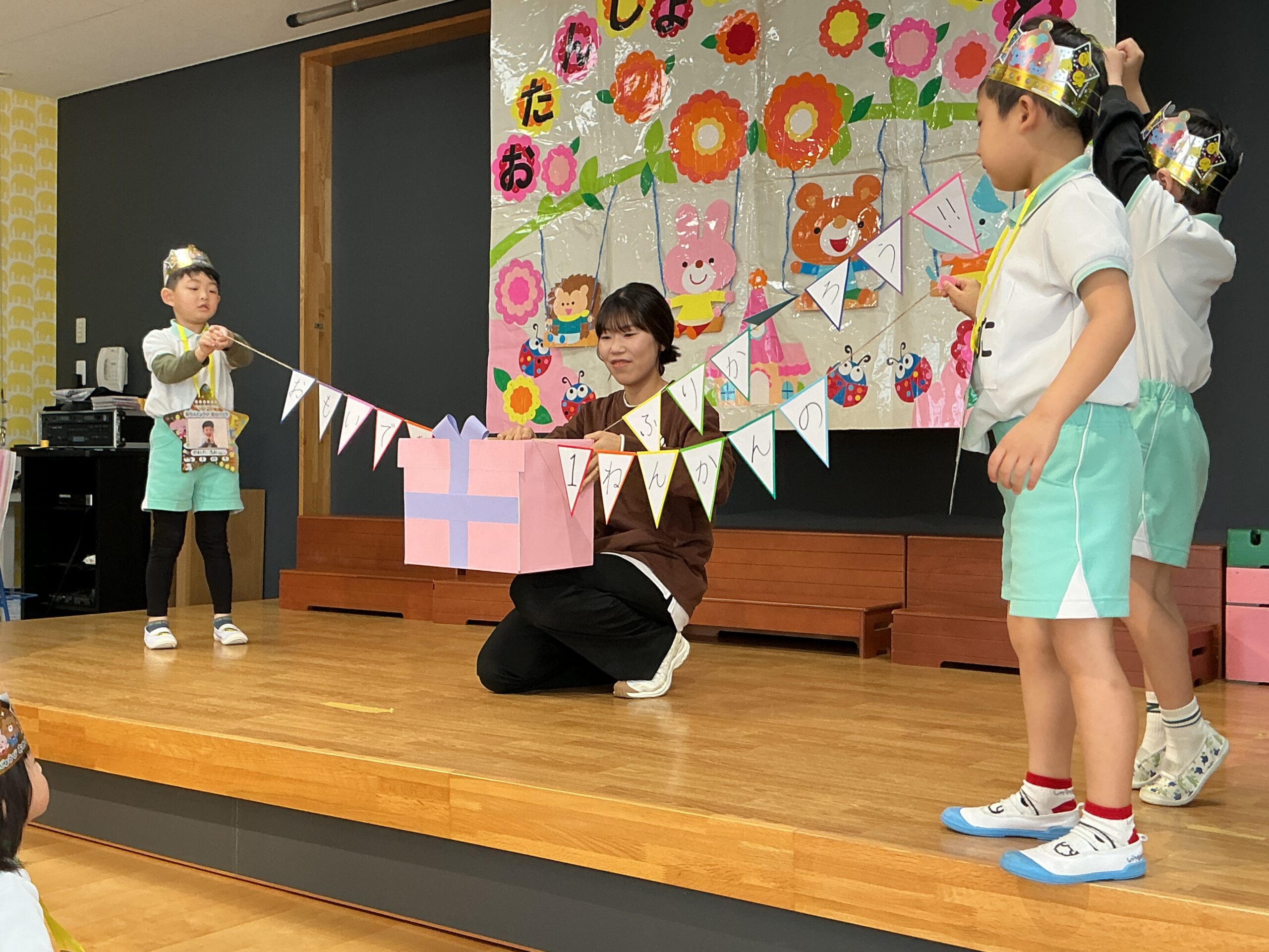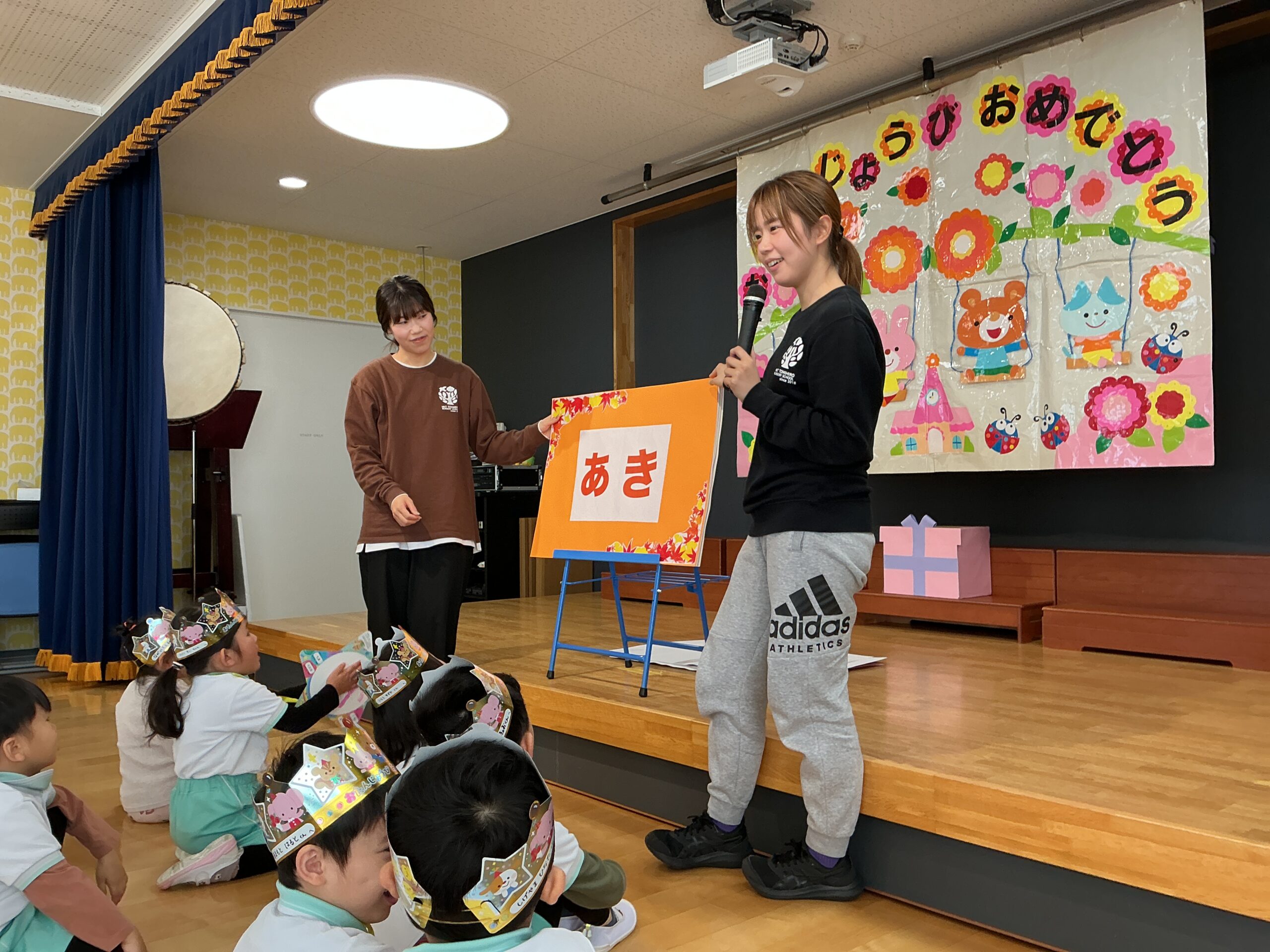 まずはじめに、先生たちからぐりとぐらのパネルシアターのプレゼントがありました!