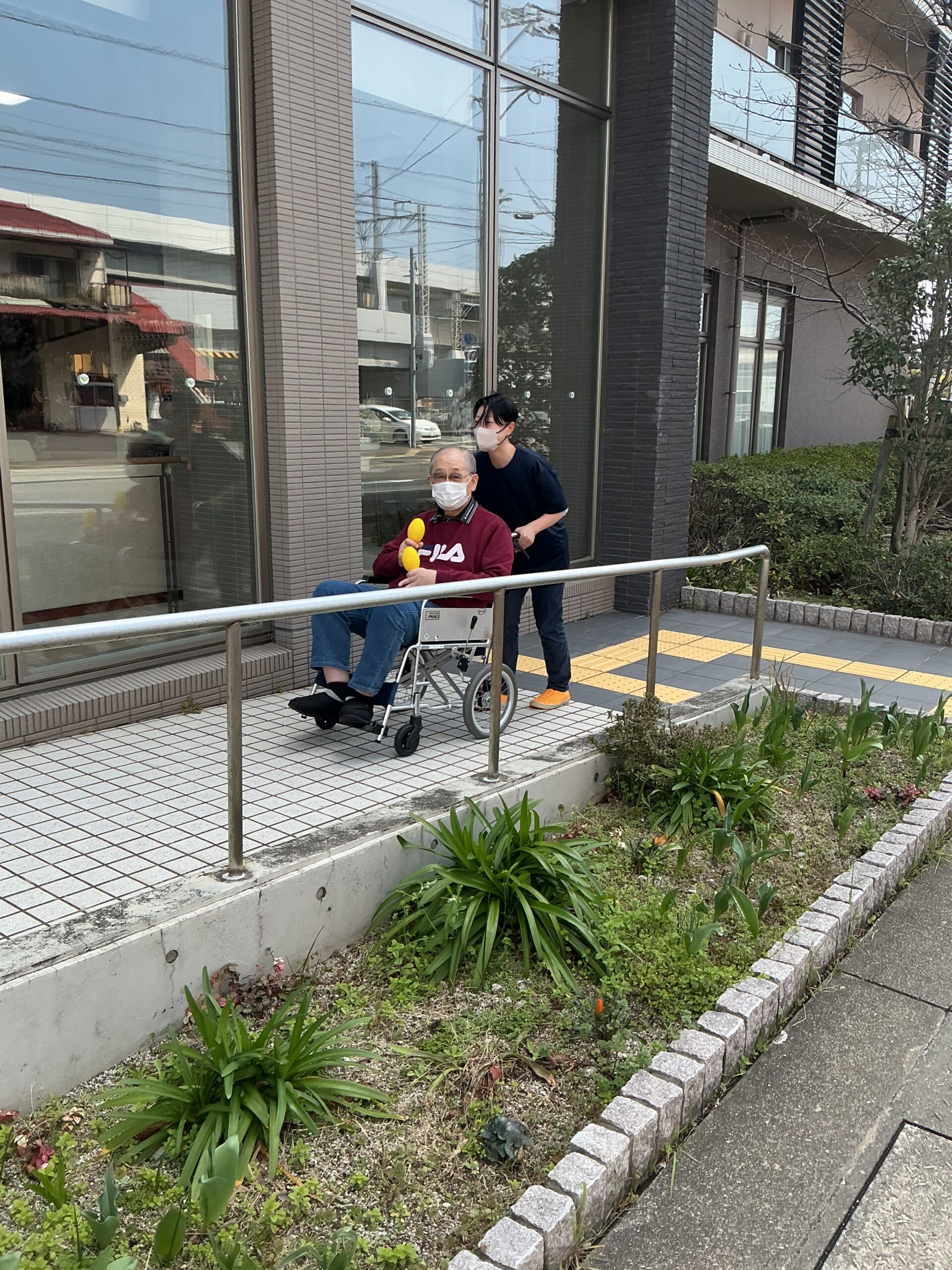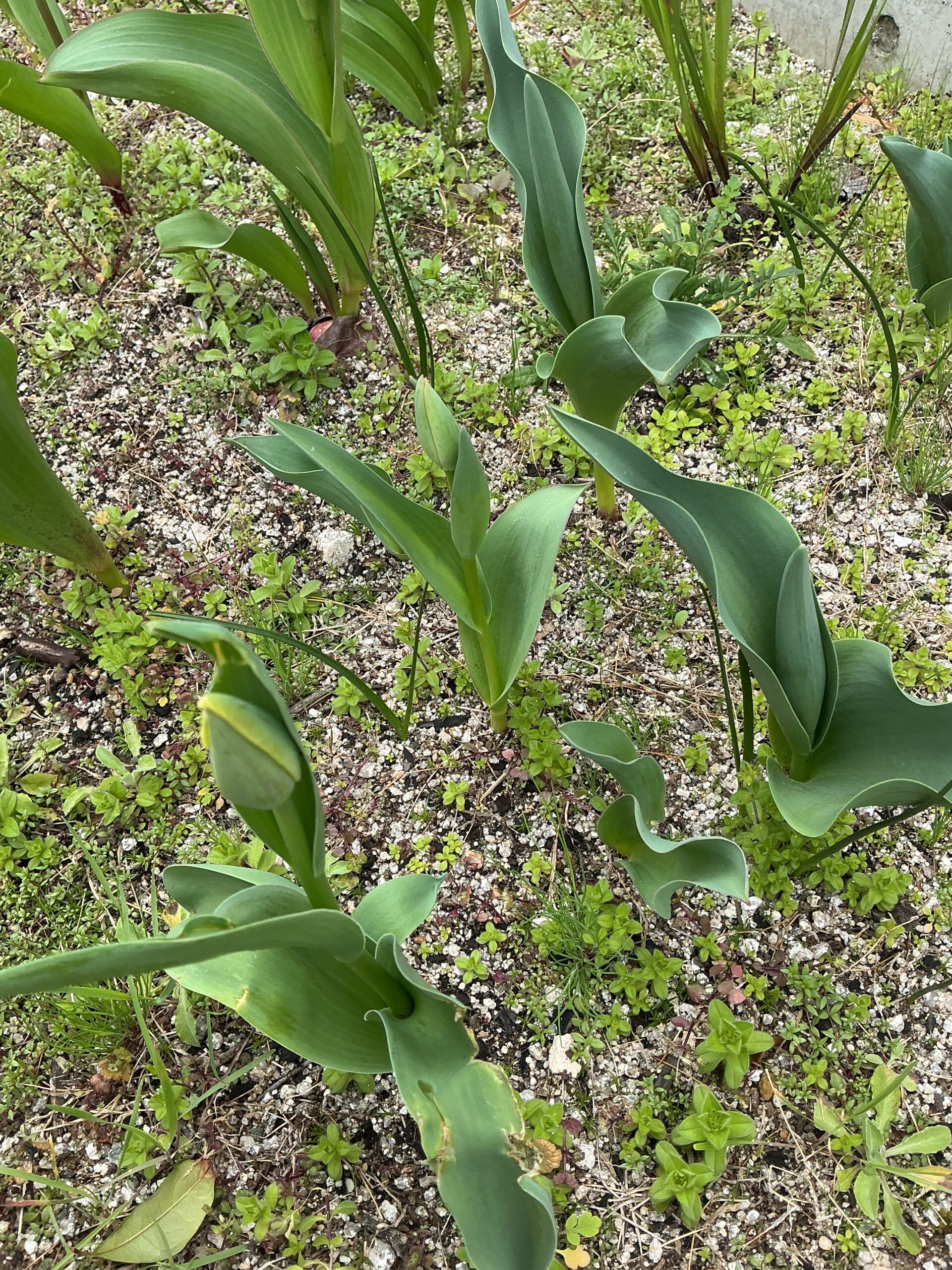 アプローチにある花壇のチューリップもすくすく背を伸ばしてます🌷🌷