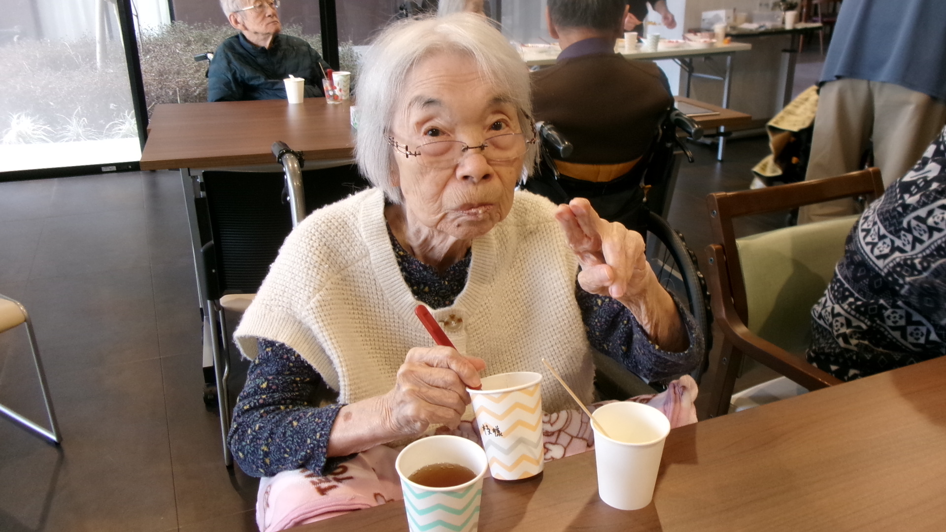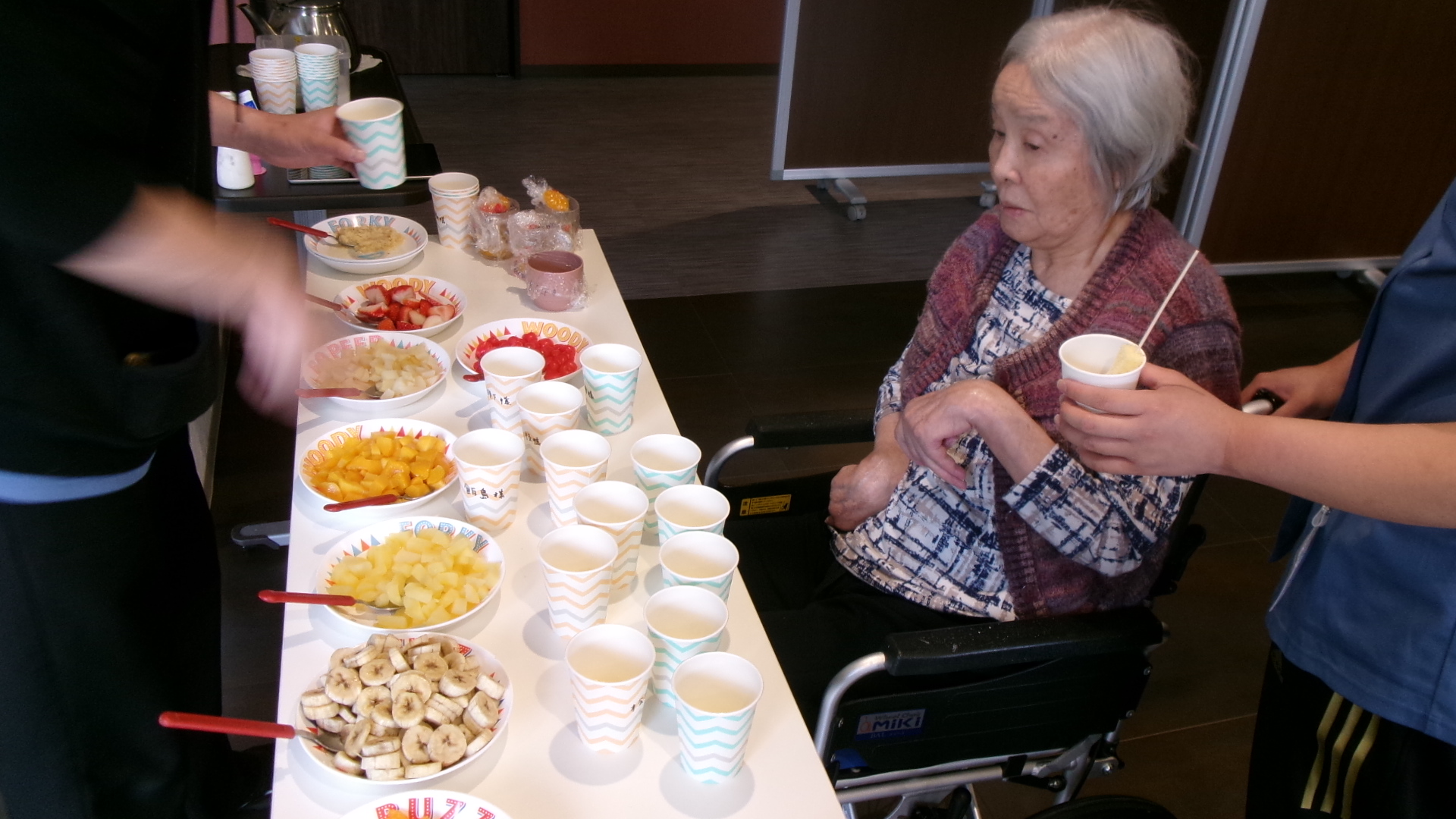 準備が終わったので、入居者様に好きな具を選んで頂きます😆