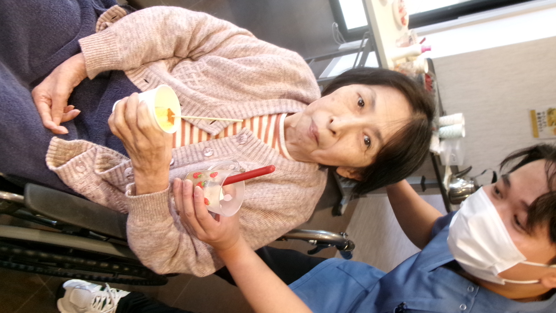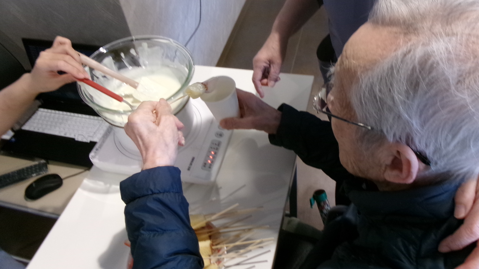 1階の本入所ユニット(シリウス)・ショートステイユニット(ベガ)は女性が多いユニットなので、3月のホワイトデーに合わせてホワイトチョコフォンデュを皆様とやりました~😁✨