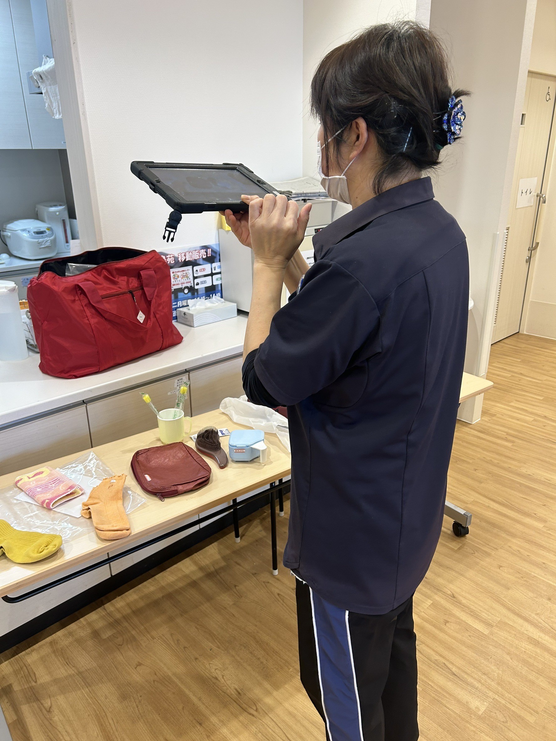 利用者様が到着されたらバイタル測定、当日の着衣、荷物を写真に撮り荷物の確認を行います。
