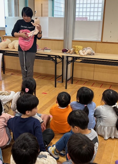 毎年、助産師でもあり元保護者の方に今年もお越しいただき、年長児さん向けの命のお話しをしていただきました。