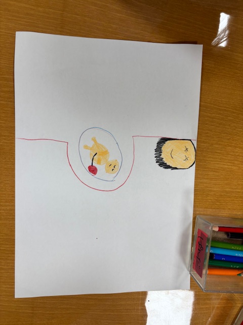 最後はみんなでお礼を伝えお話しも終わりましたが、この後年長児さんはたくさんの聞いたお話しについて絵を描きました。