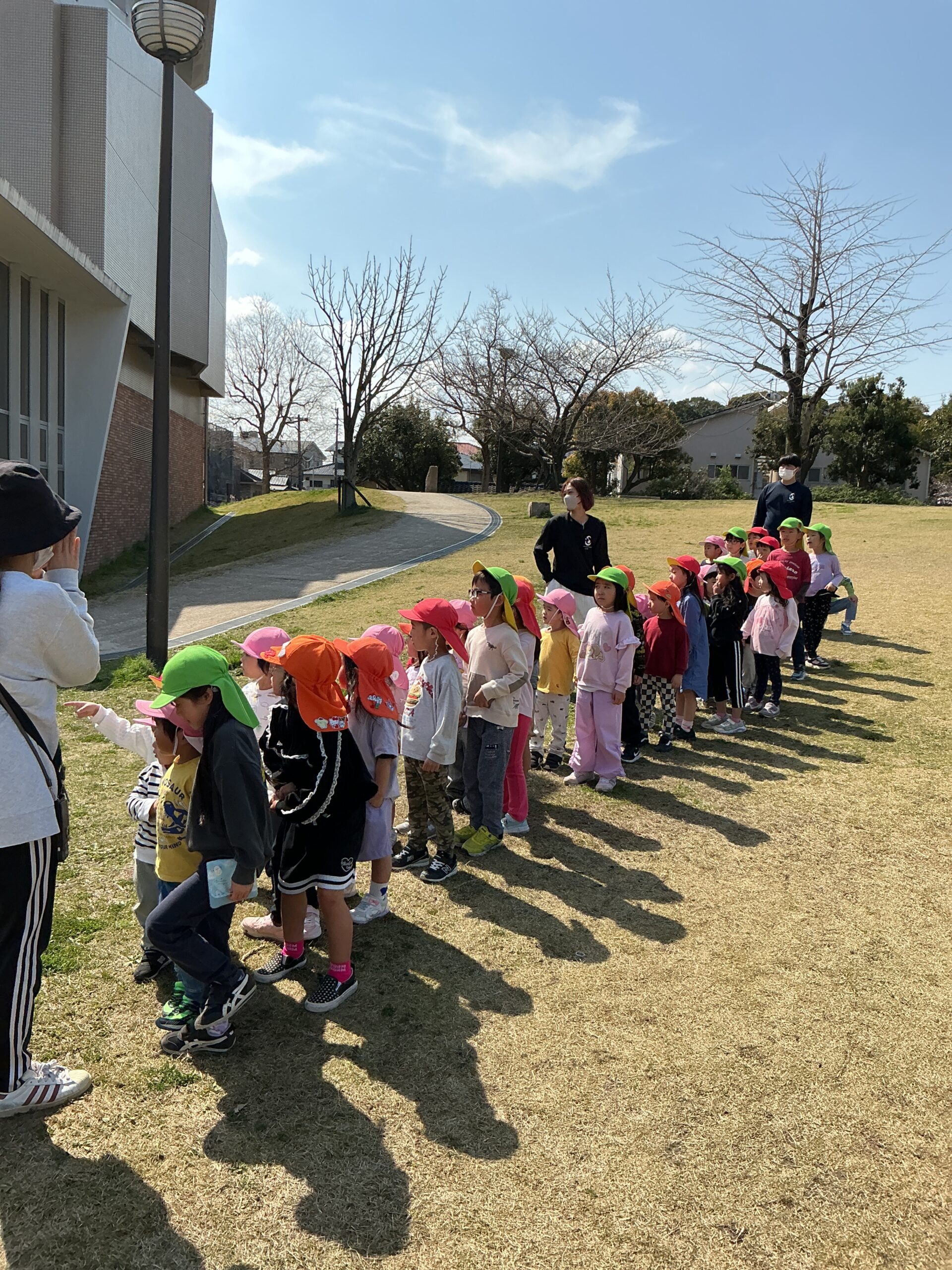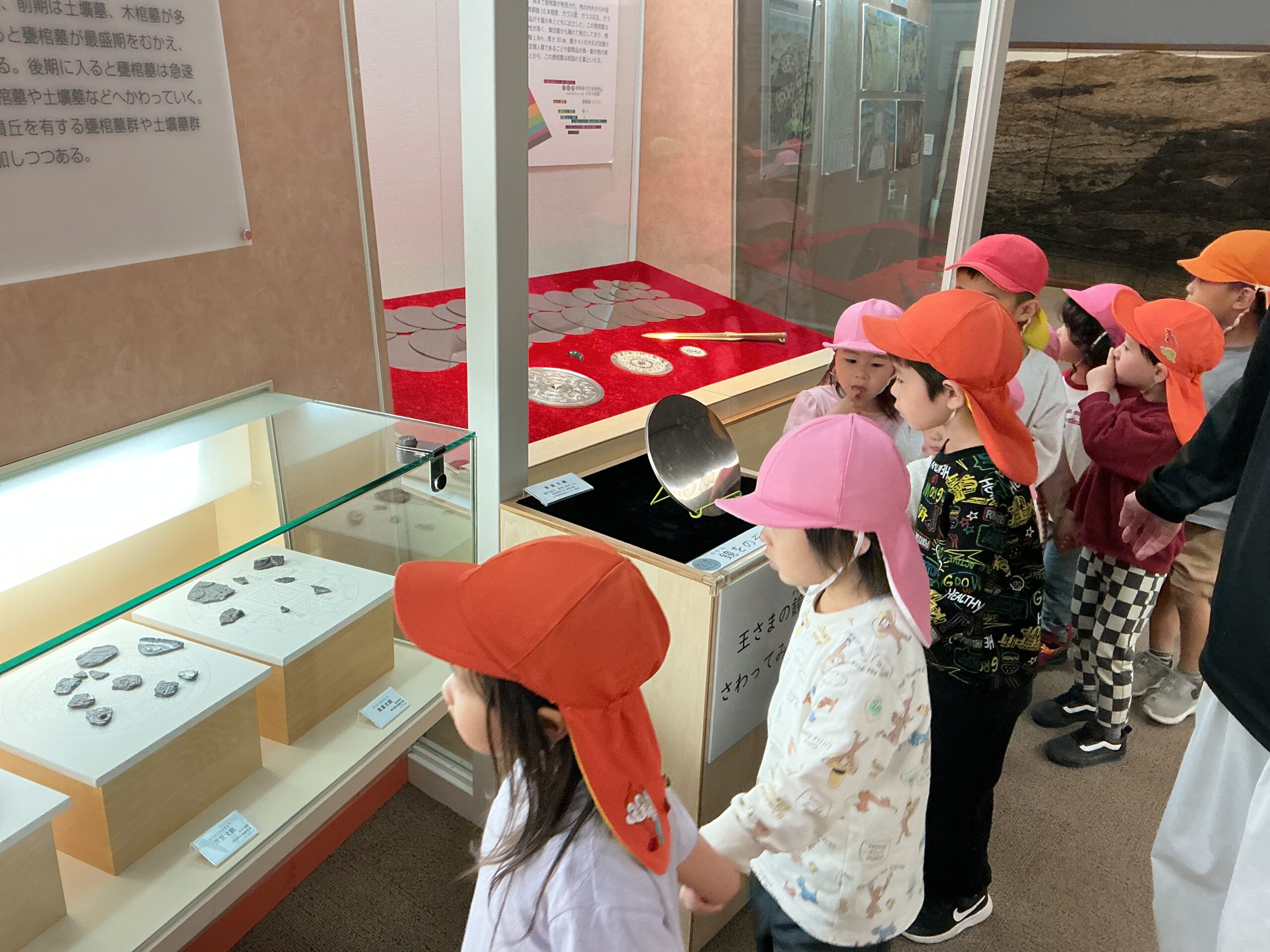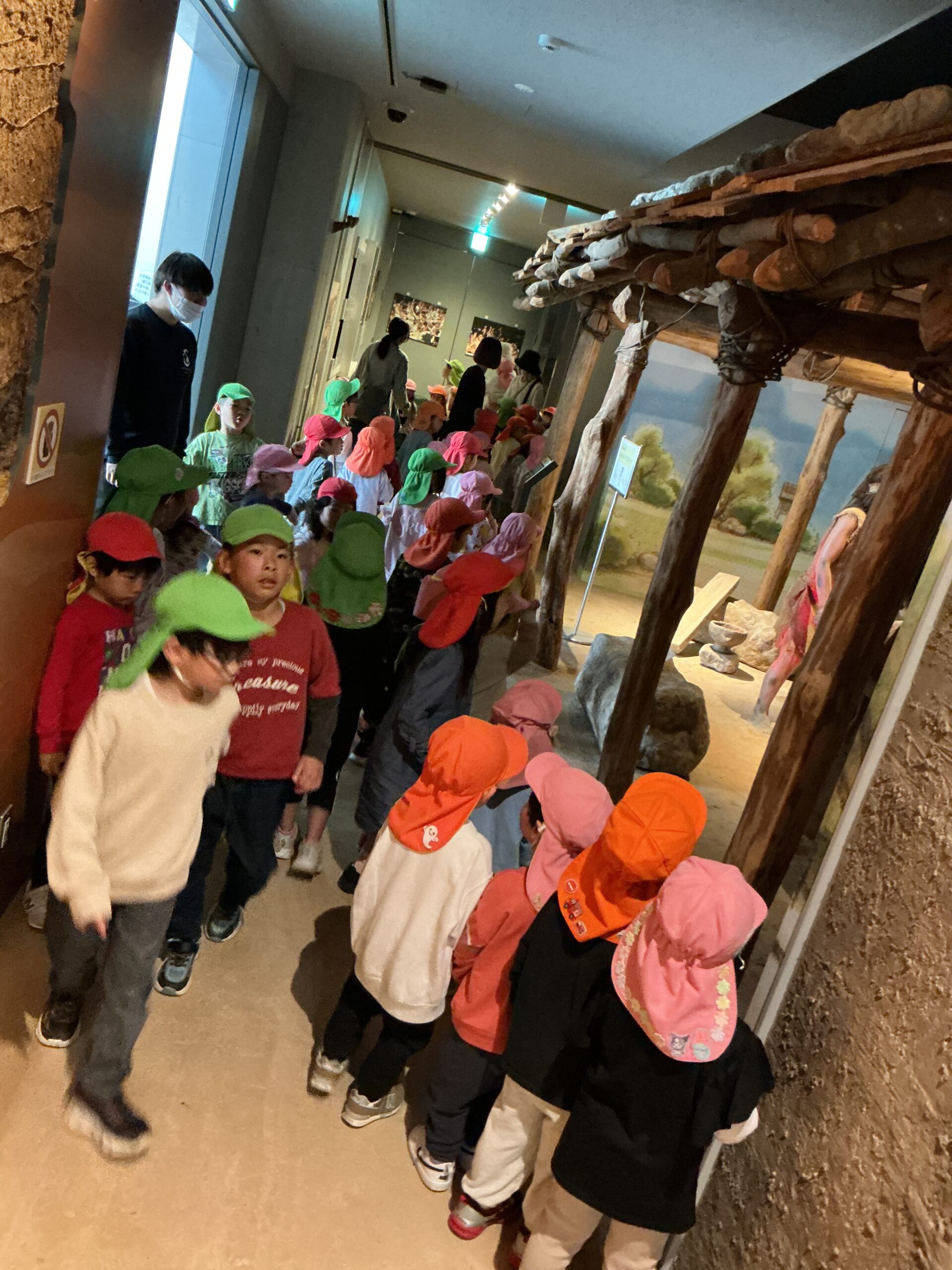 春日市の奴国の丘歴史公園内の資料館に行き、2歳児さんは初めて入るお友だちもいました。
