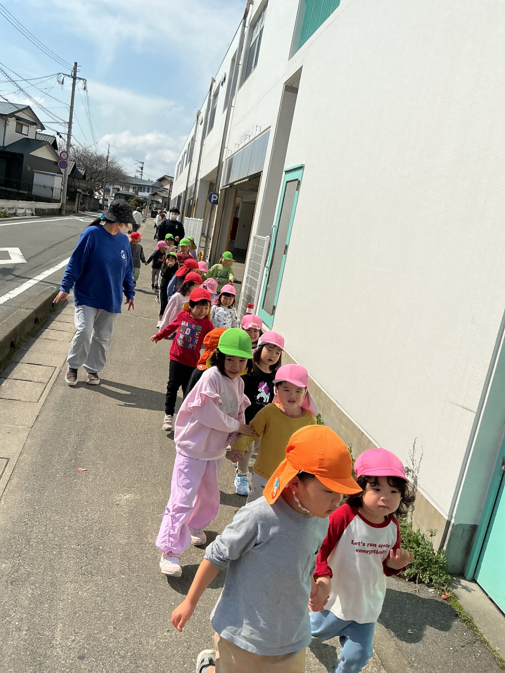 2歳児さんが以上児クラスのお友だちと一緒におさんぽにいきました。