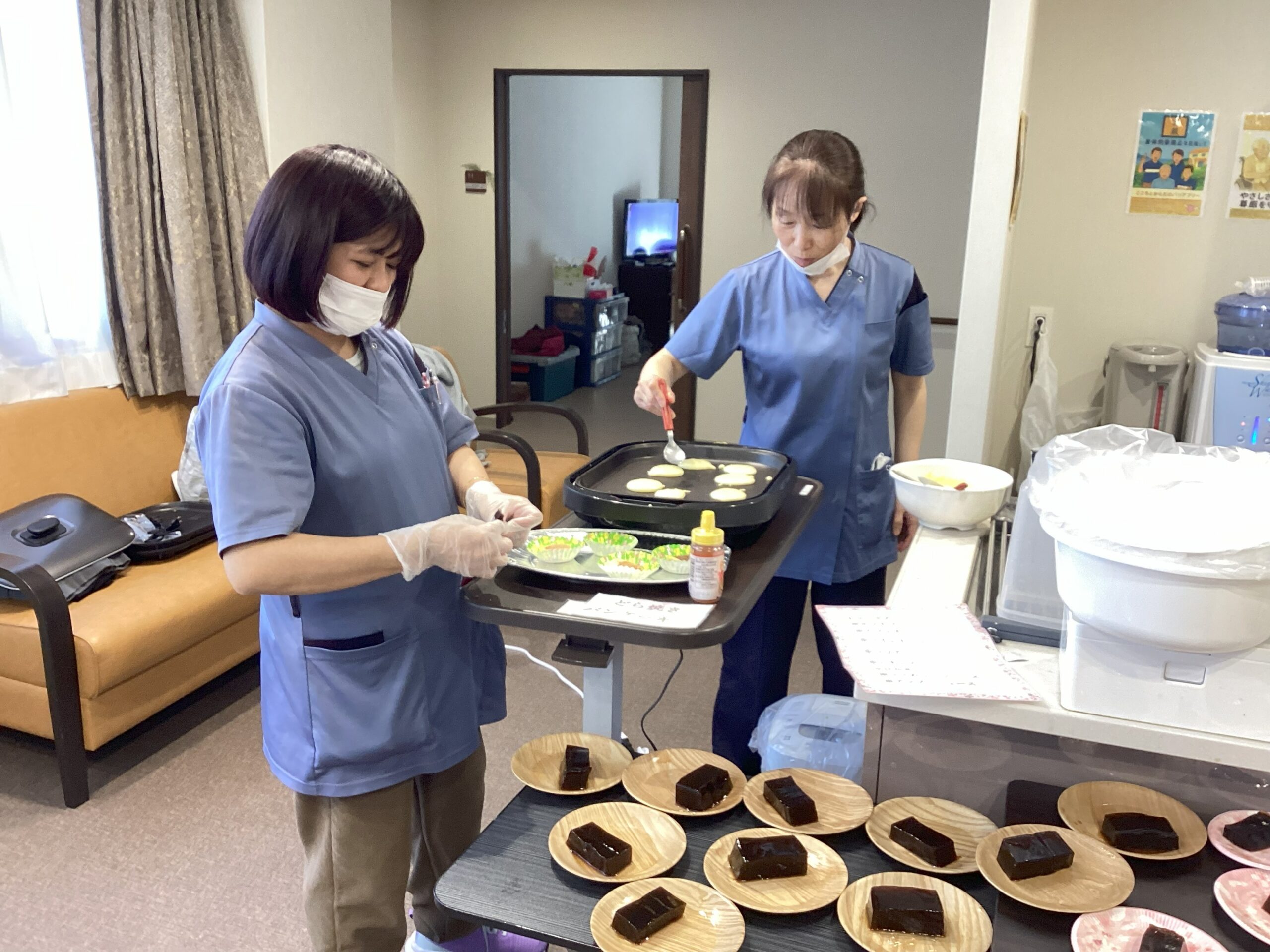 まずは職員が切ったり、粉を作って焼いたりの準備😆