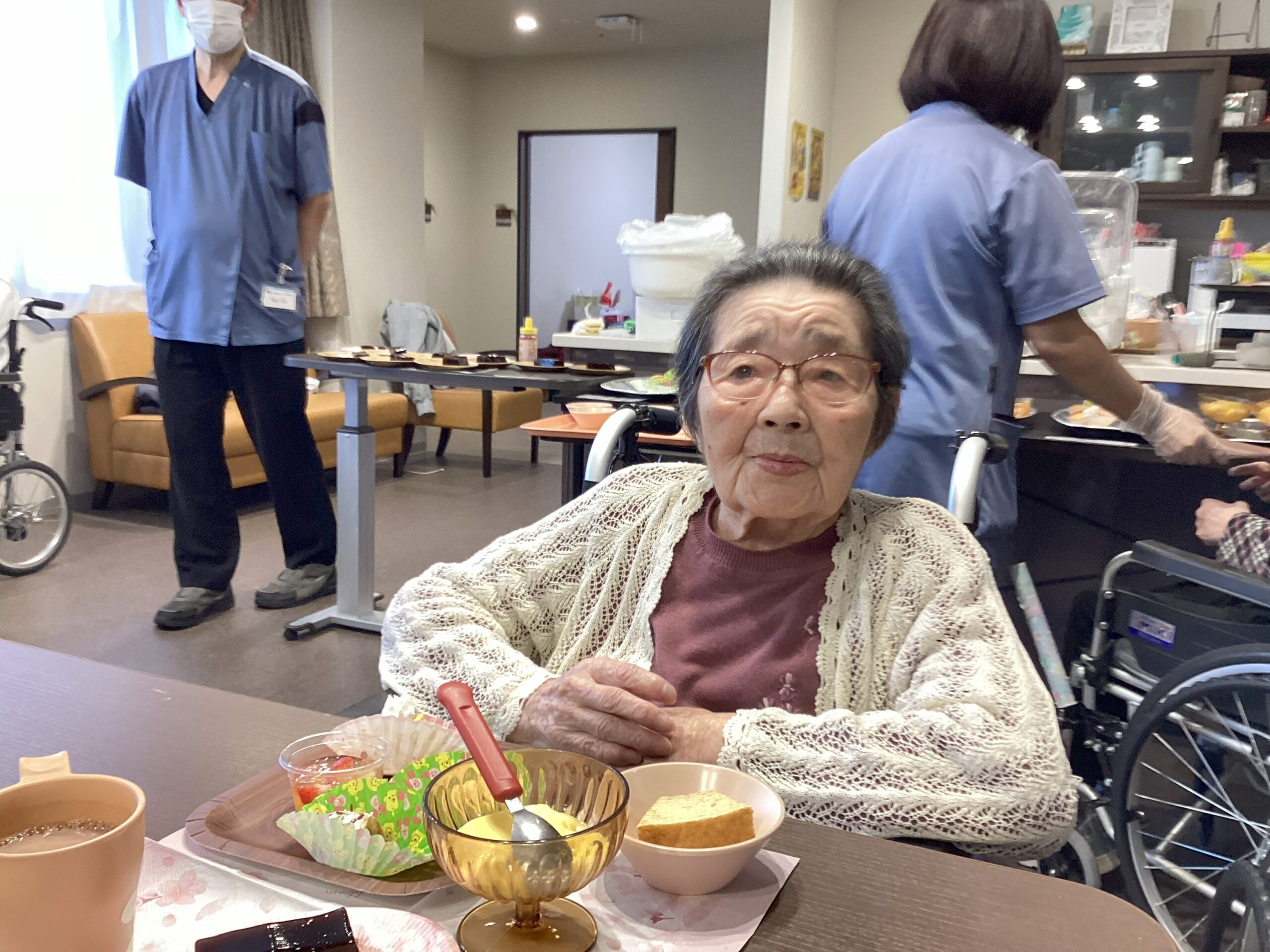 迷わず選んでいたご入居者様もいらっしゃいましたが、悩んでいたご入居者様もいらしたので、食べたい種類の物を少量で全てご提供させて頂くと、とても喜んで召し上がっていました😋