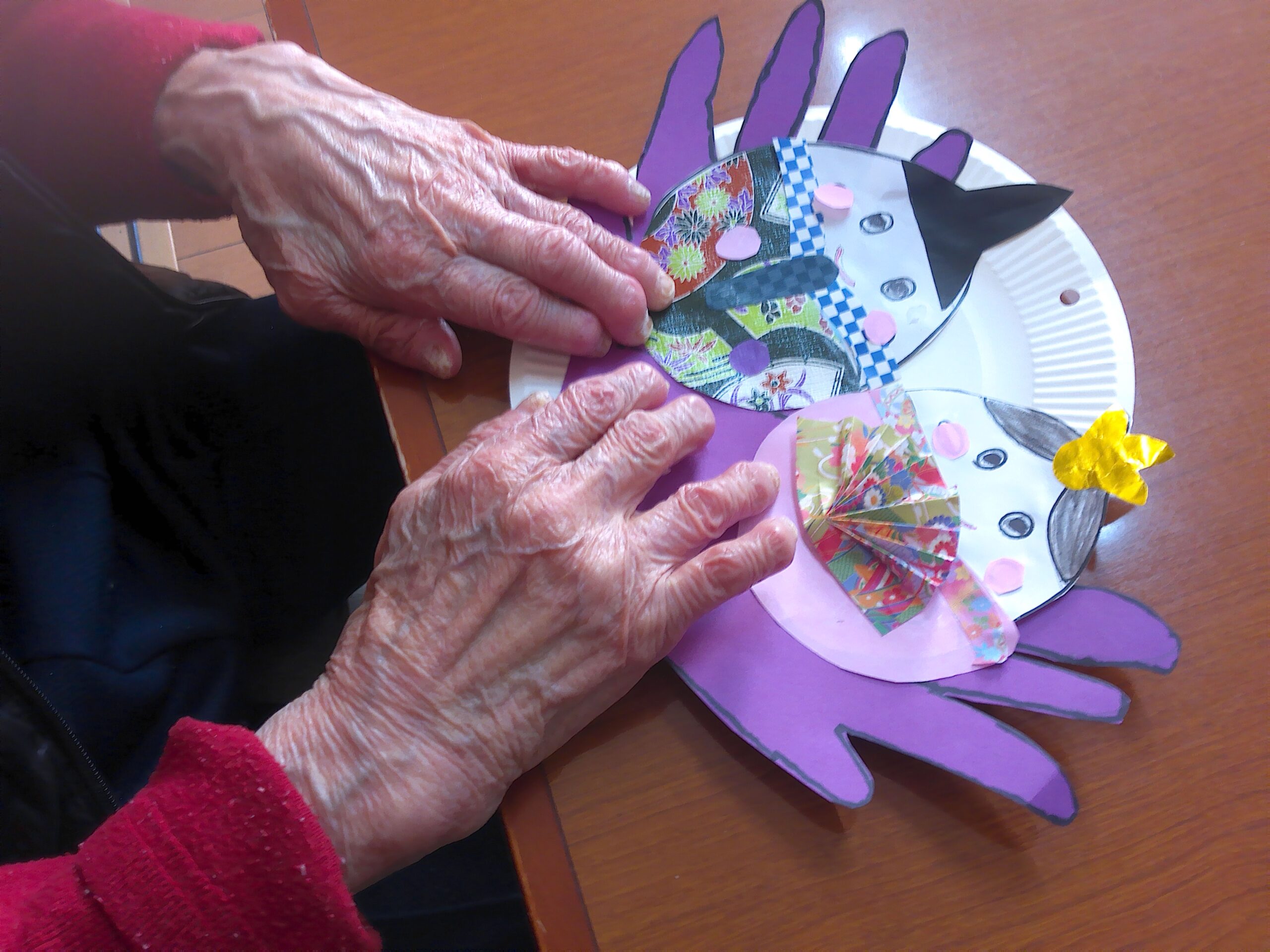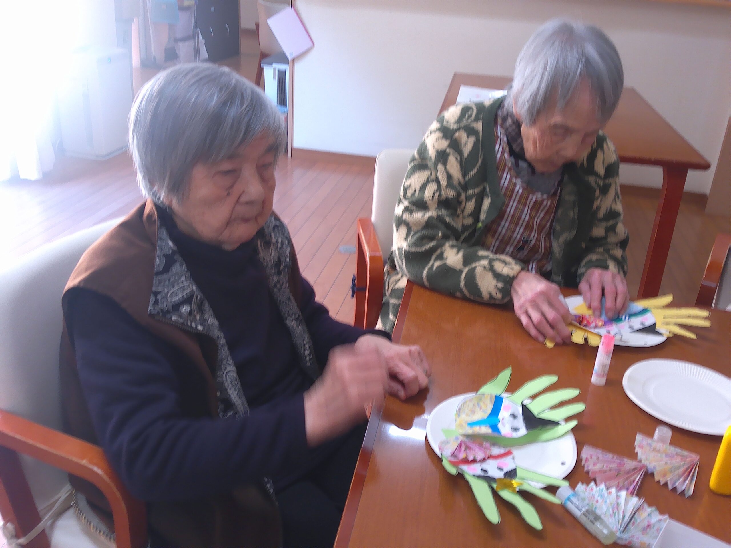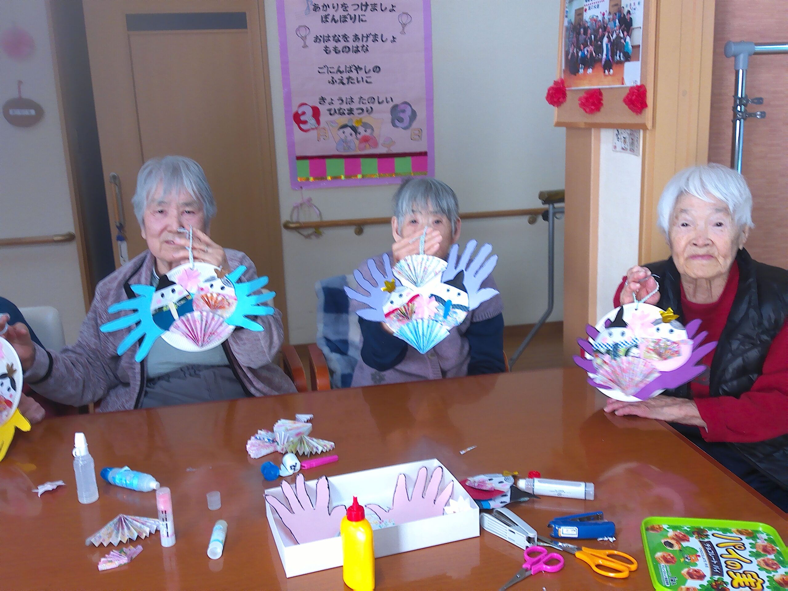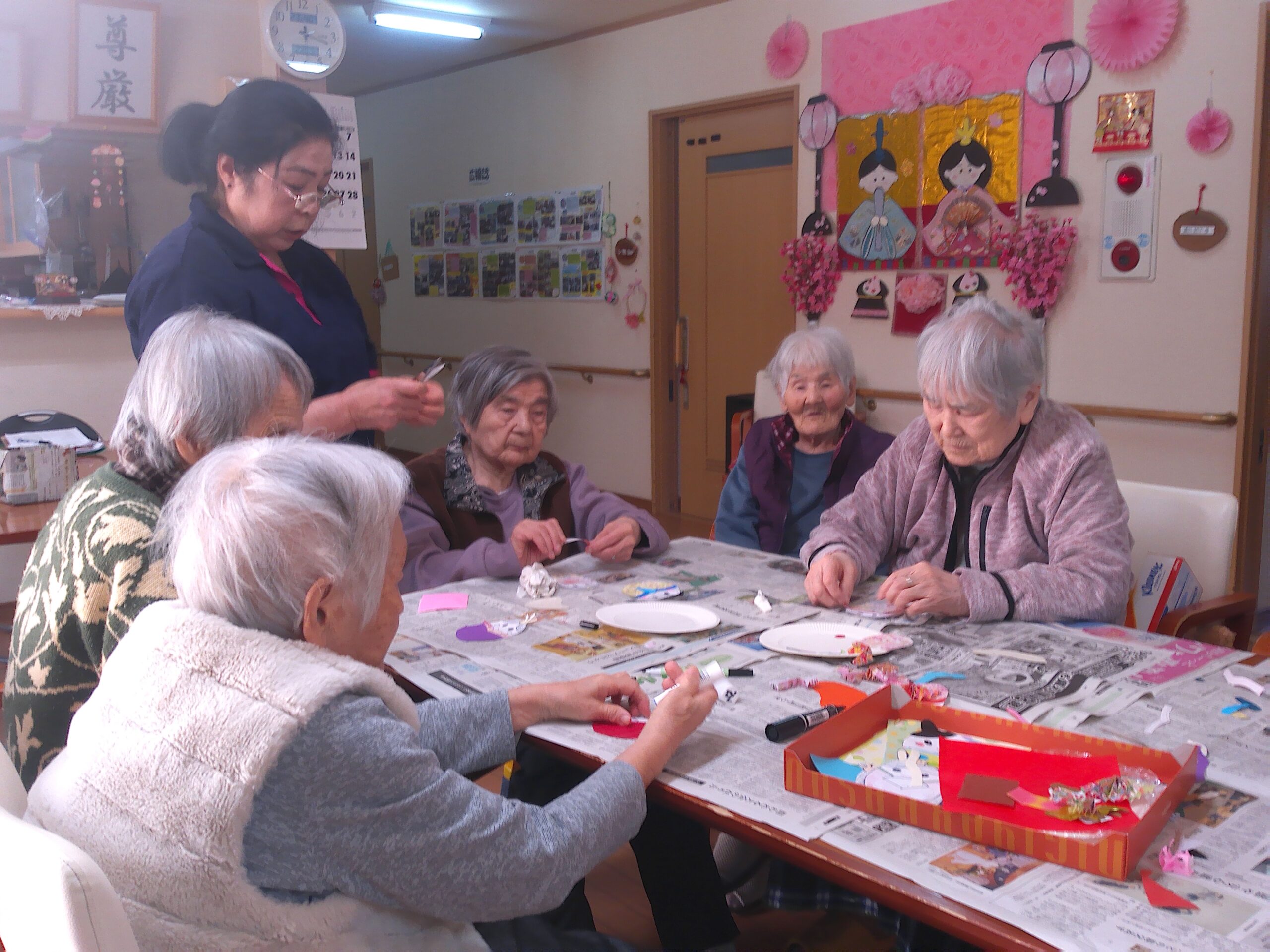 ひなまつりを開催するにあたり、ご入居者様に飾りのお手伝いをしてもらいました。