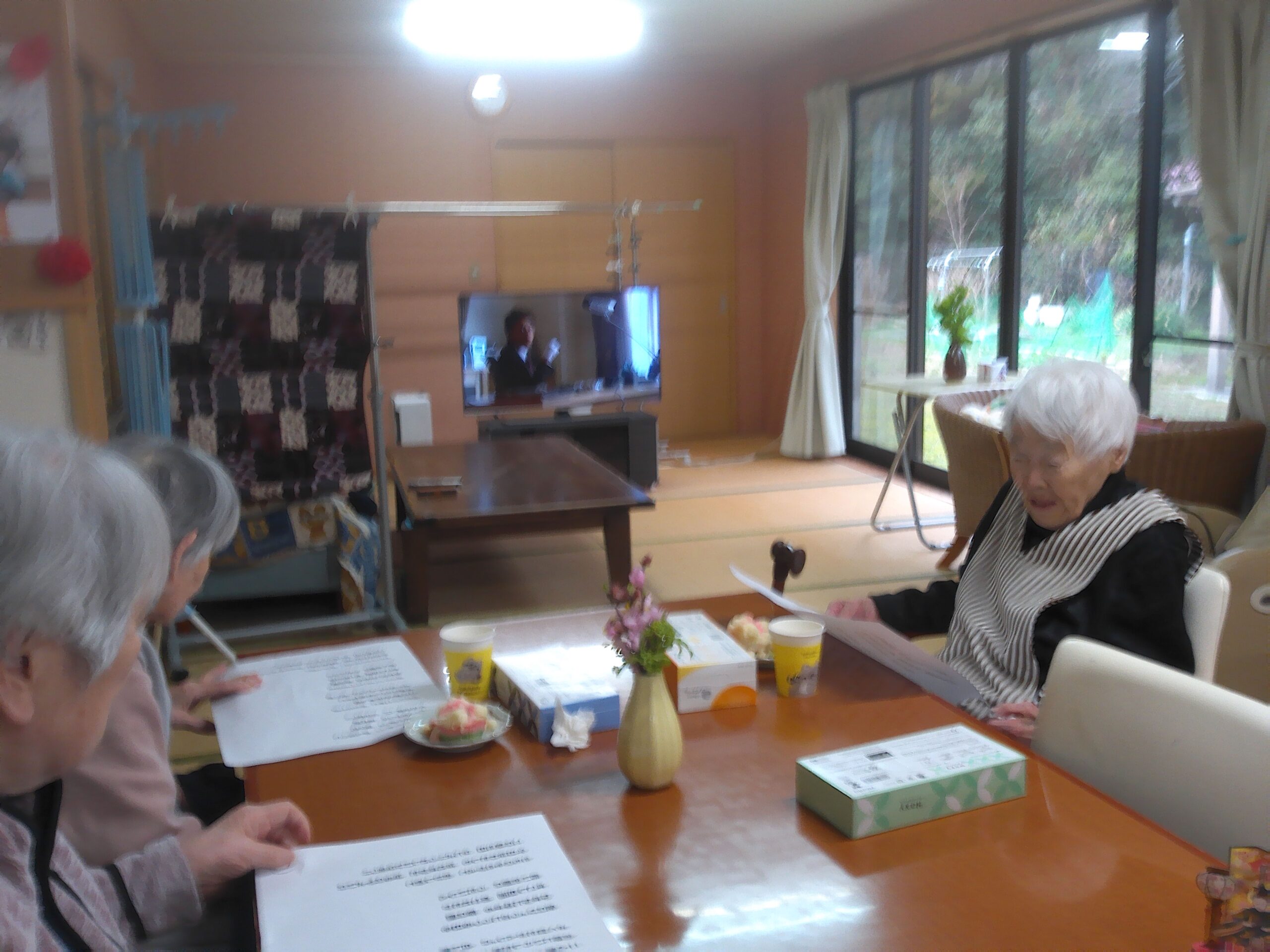 お腹も落ち着いたところで、おひな祭りの歌を皆さんで、楽しく歌いました!!とても楽しい時間が