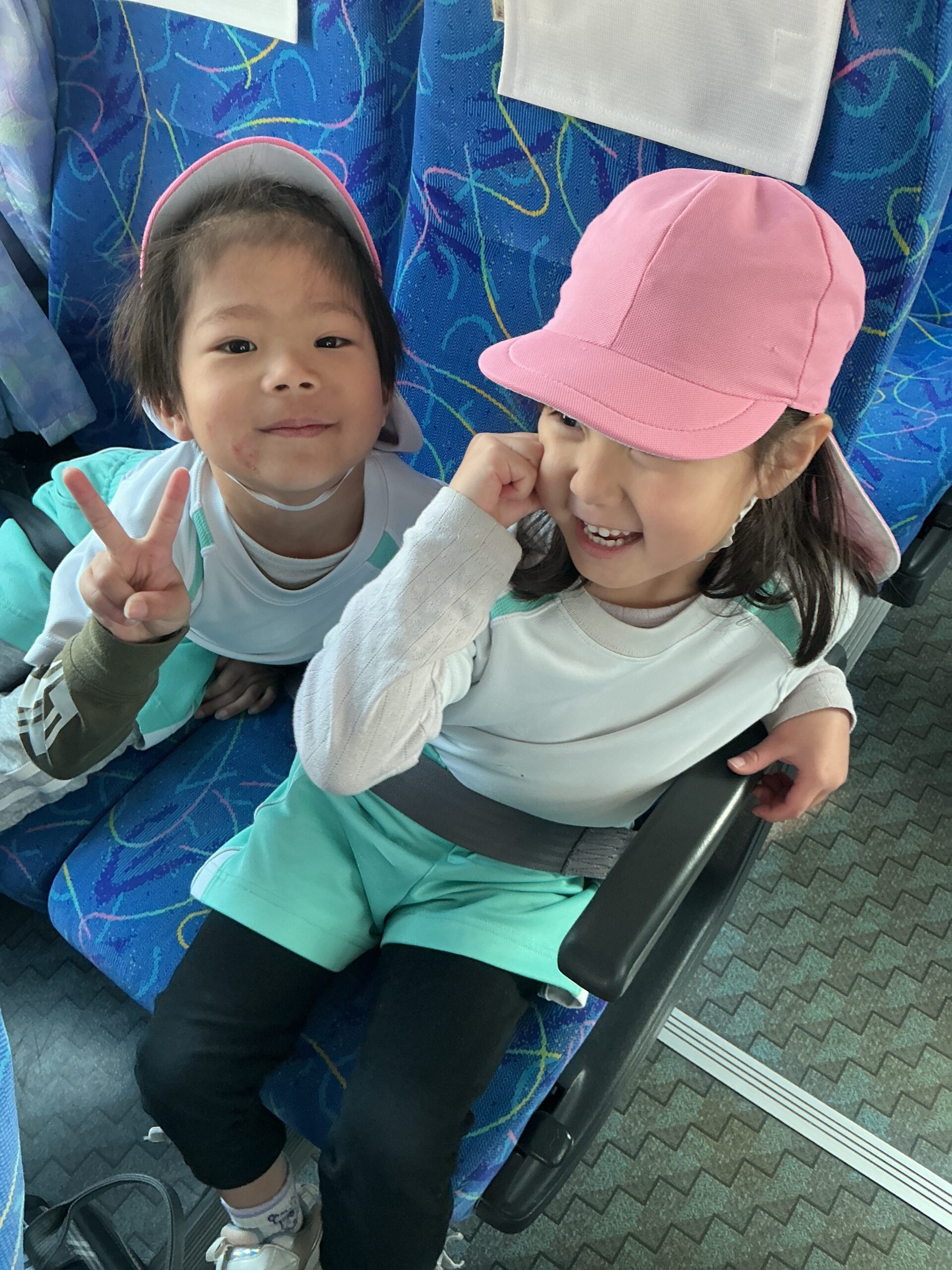 2歳児、3歳児は初めての大型バス乗っての遠足です。