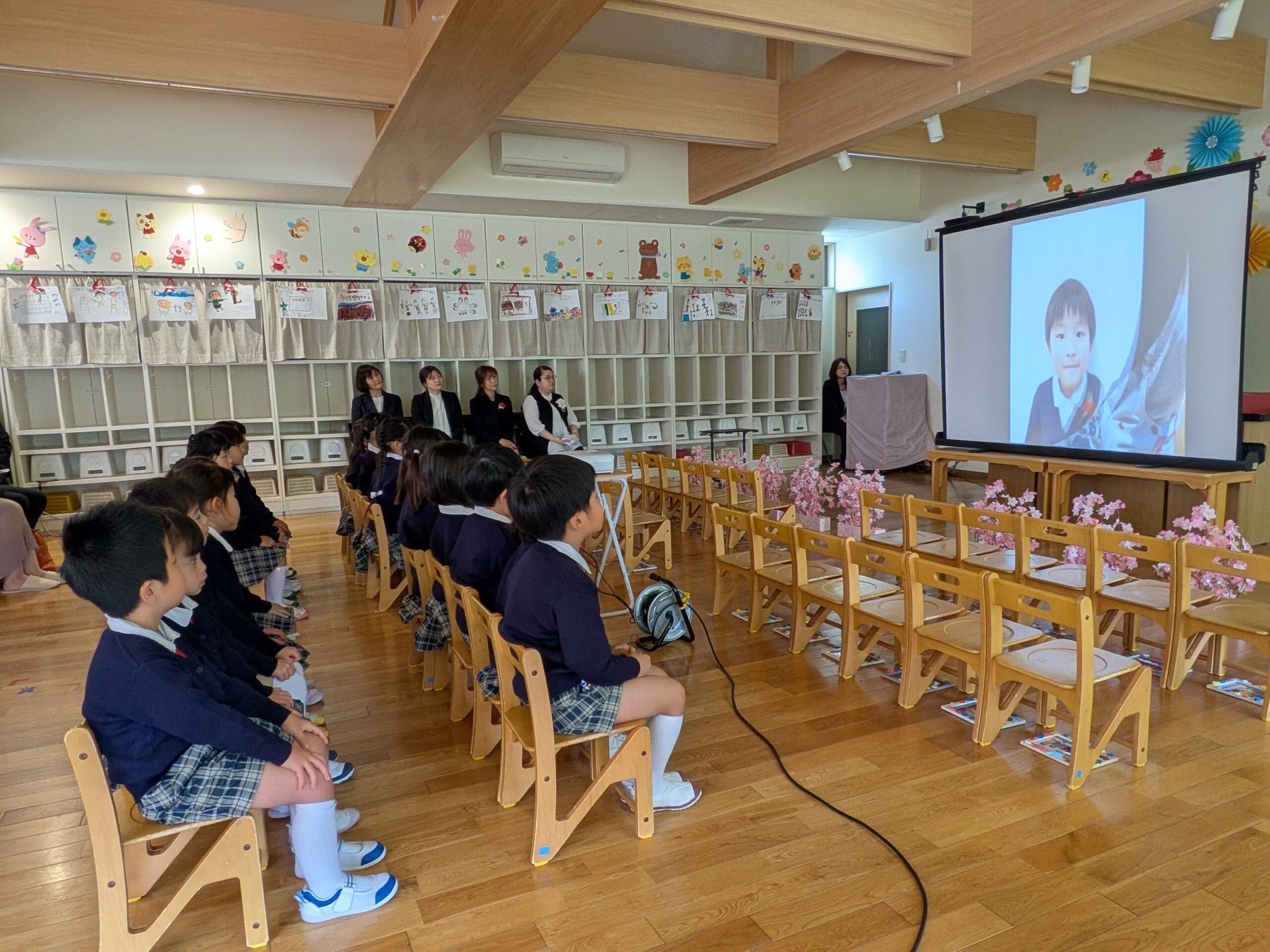 5歳児さんが入場してくる前は、思い出のDVDを見ました!!