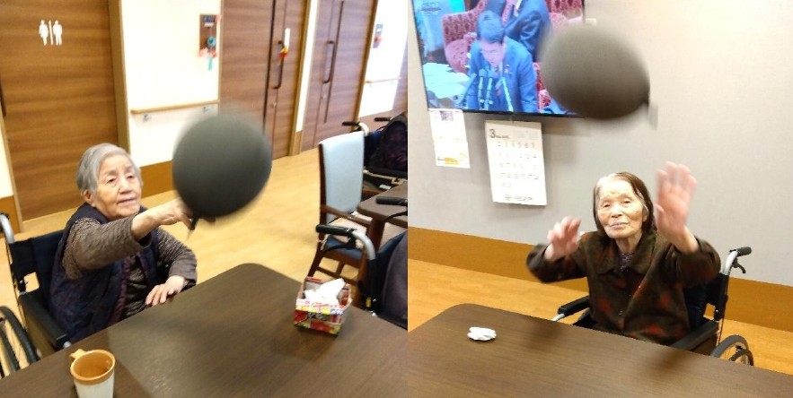 レクリエーションの中でも“王道”の風船バレーは、自然と笑顔が広がるひとときです。