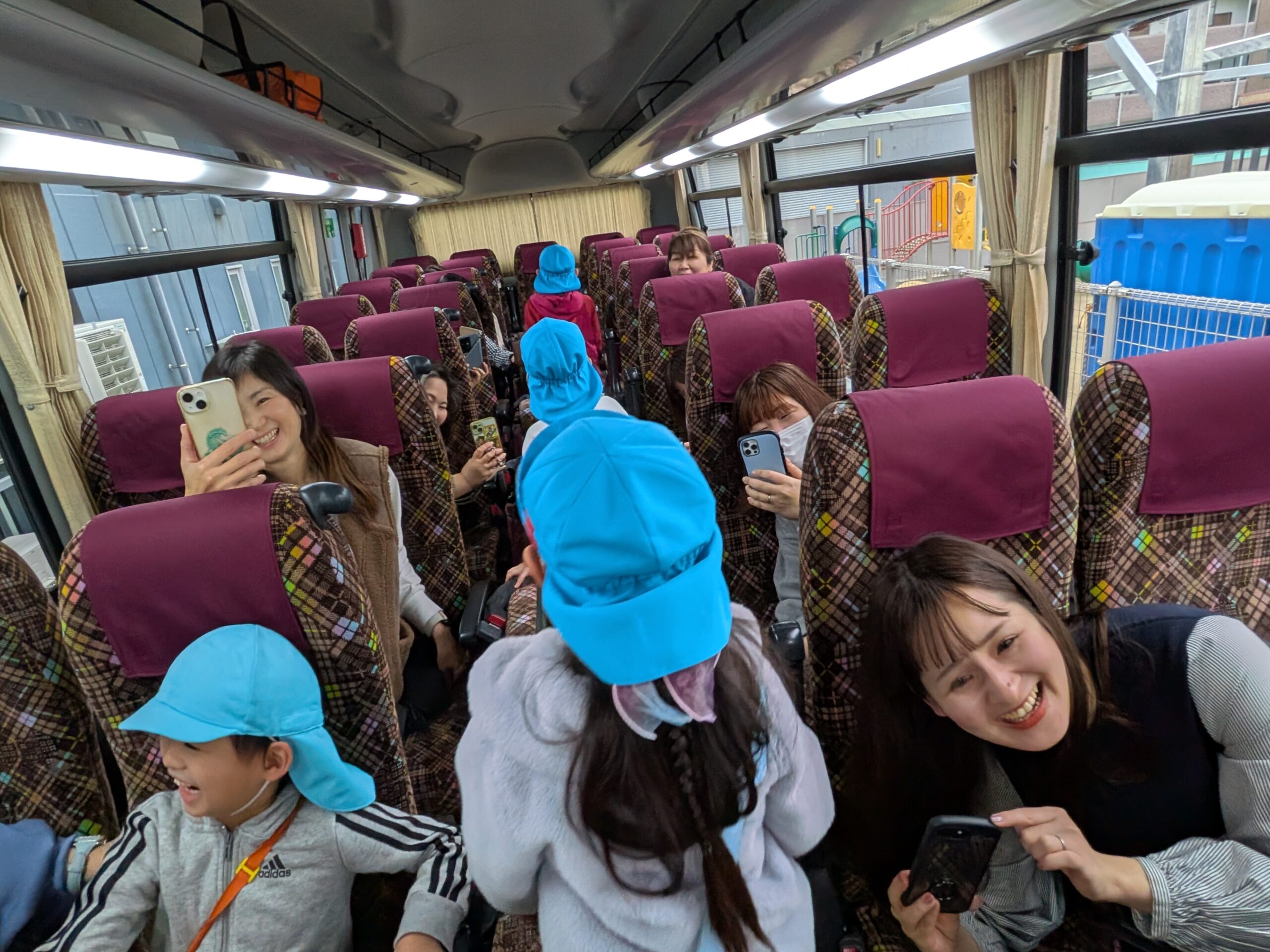 バスの中では、クイズやふれあい遊びも準備されており、大盛り上がり✨