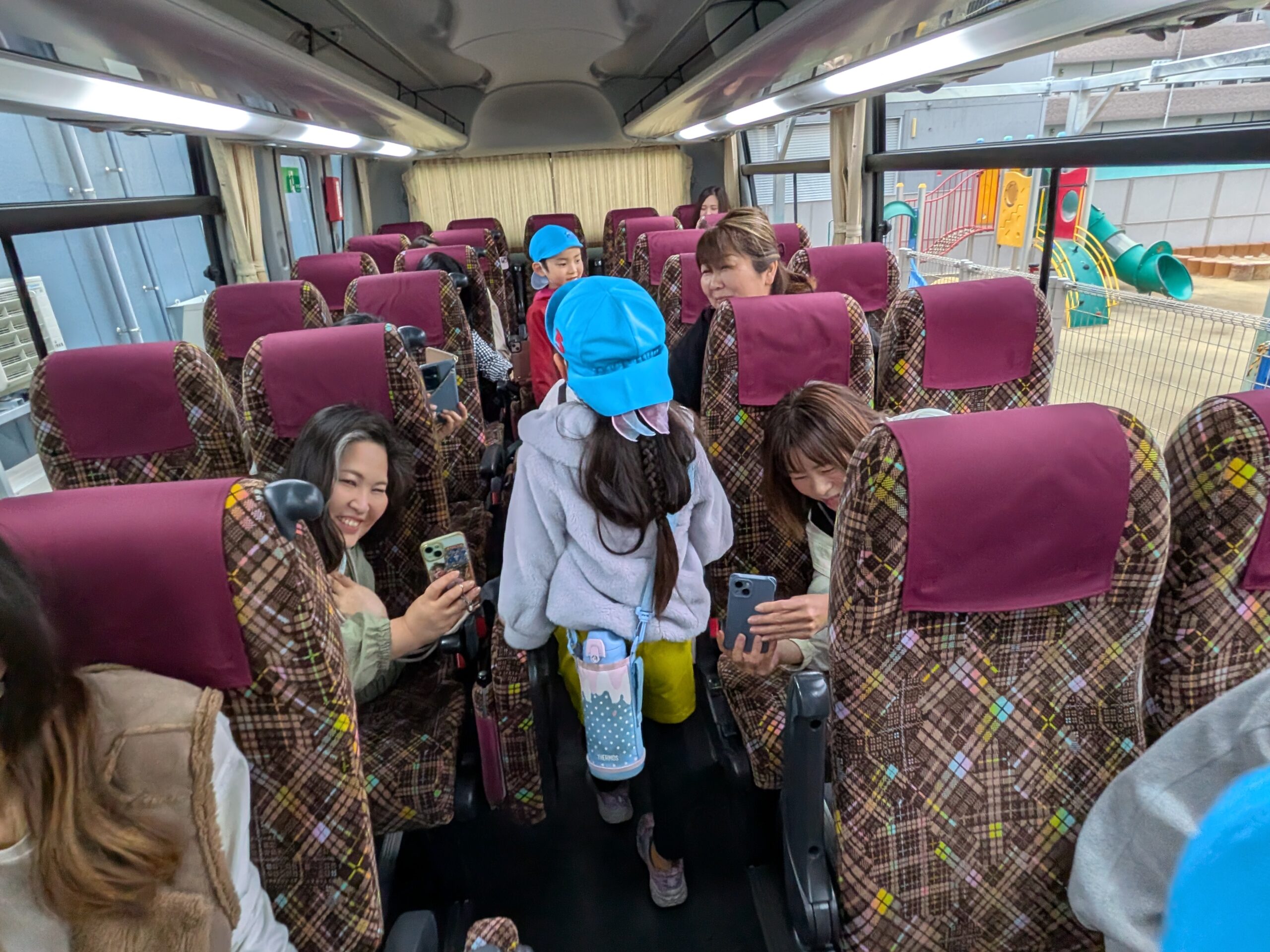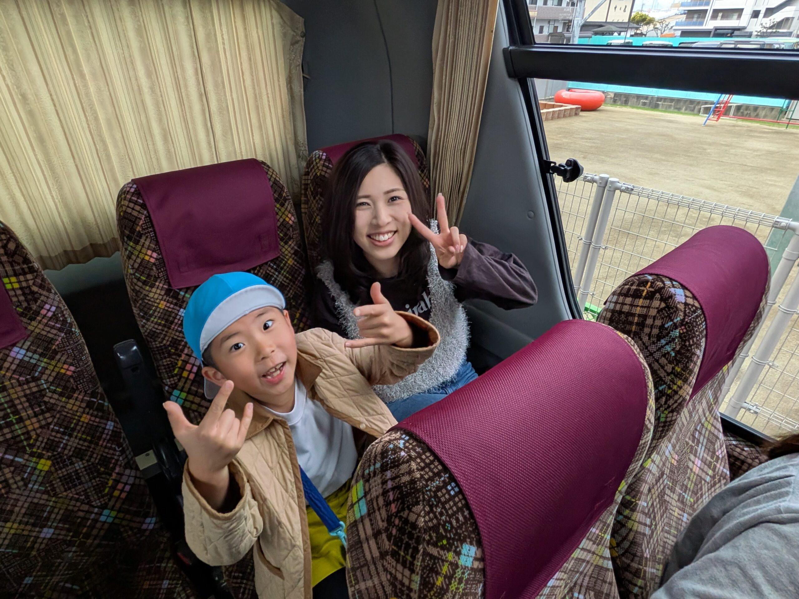 バスの中では、クイズやふれあい遊びも準備されており、大盛り上がり✨