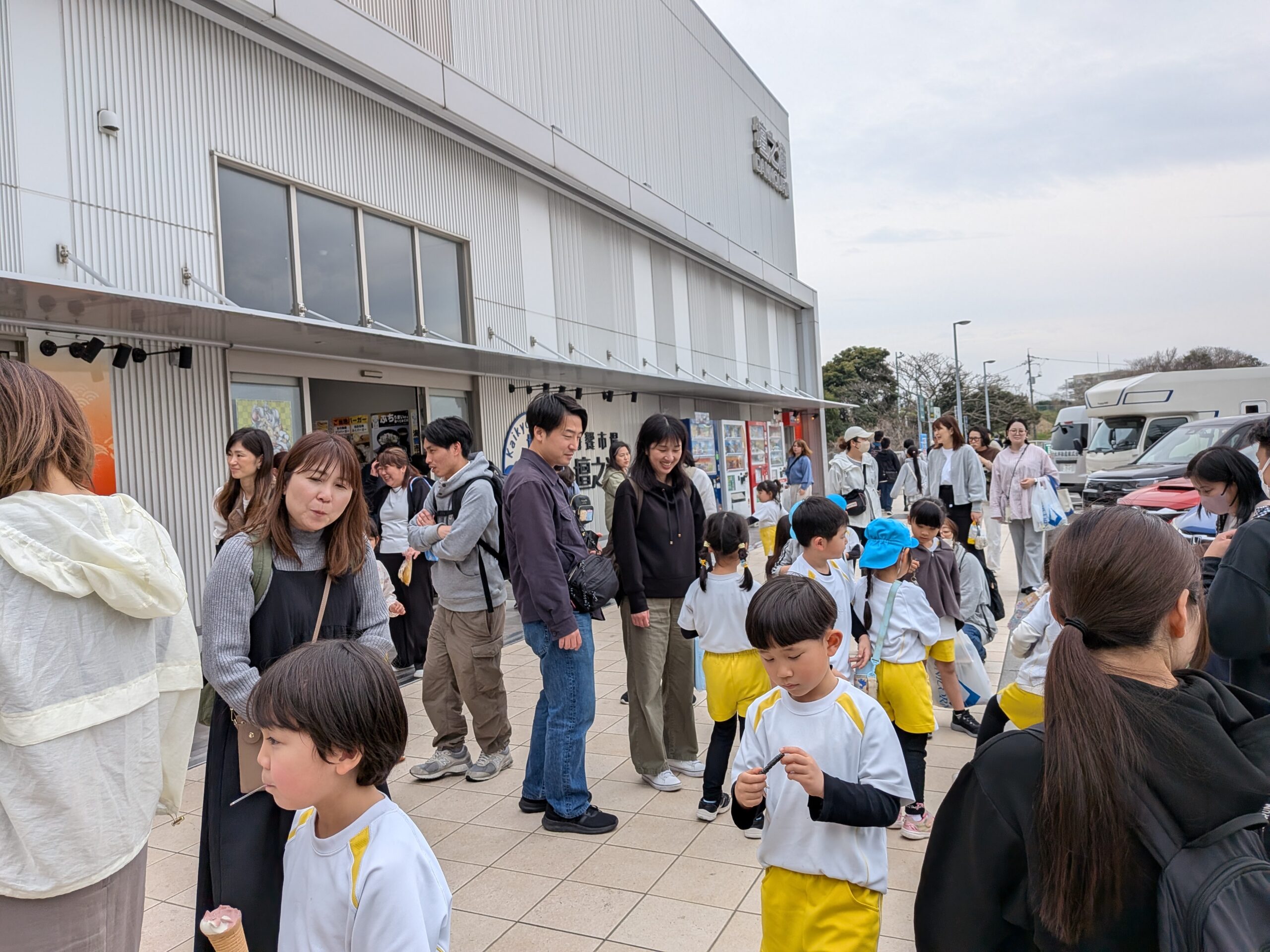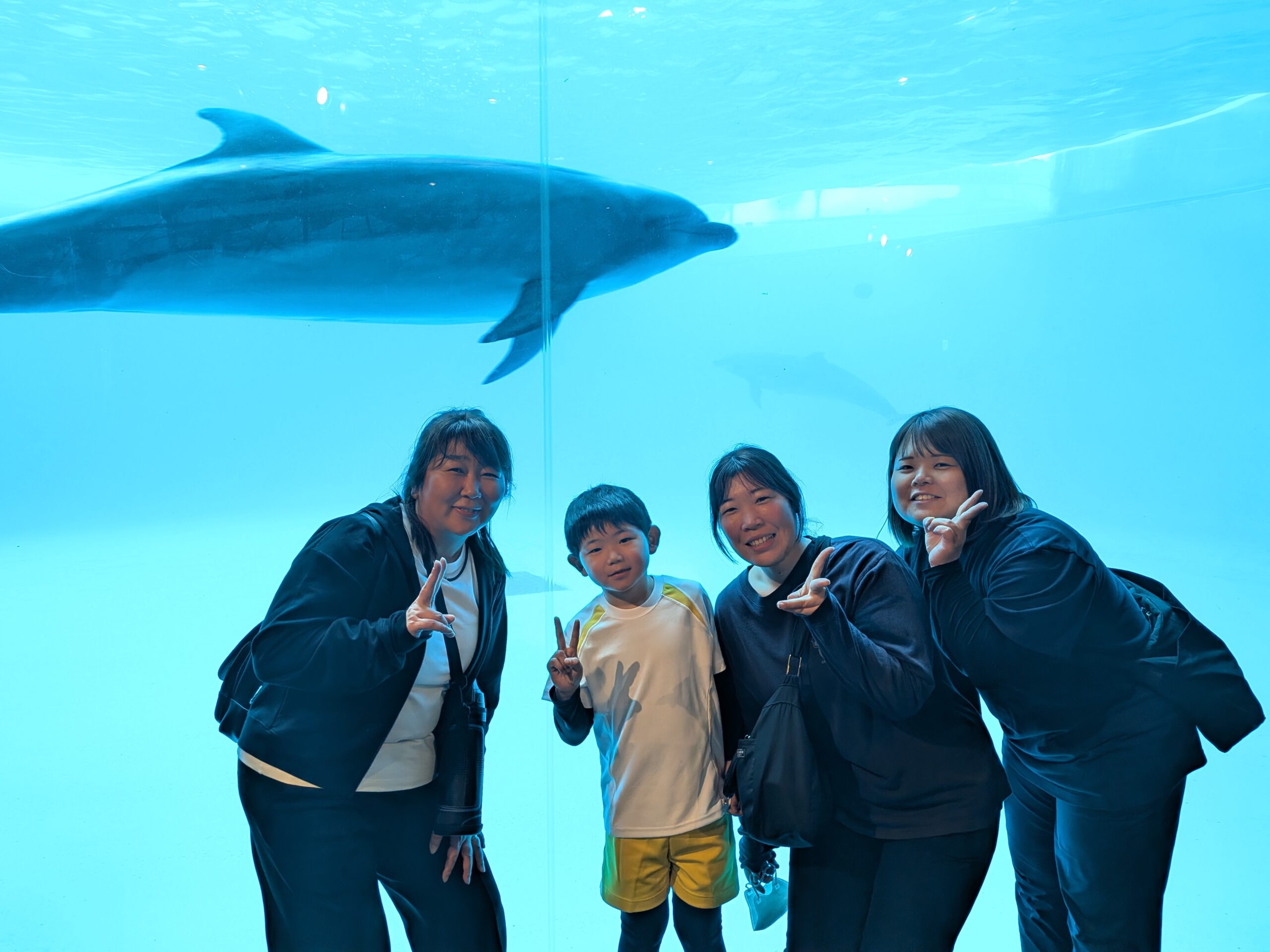海響館に到着すると、お父さん方も来ており更に喜ぶお友達でした✨