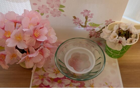 おやつには桜ゼリーで季節を味わっていただきました🍒