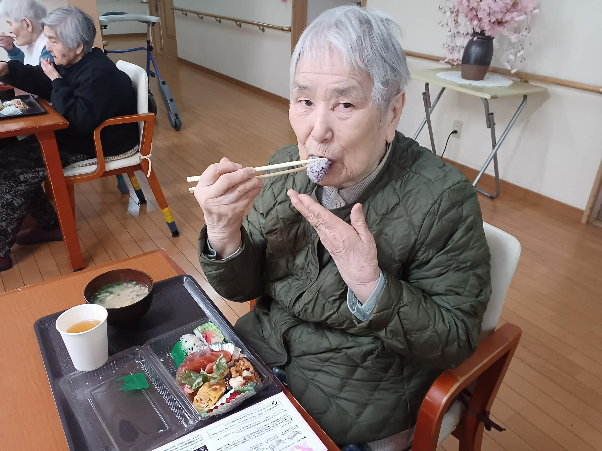 本当は、お花見の場所でお弁当を召し上がって頂く予定でしたが、天候など諸事情により、