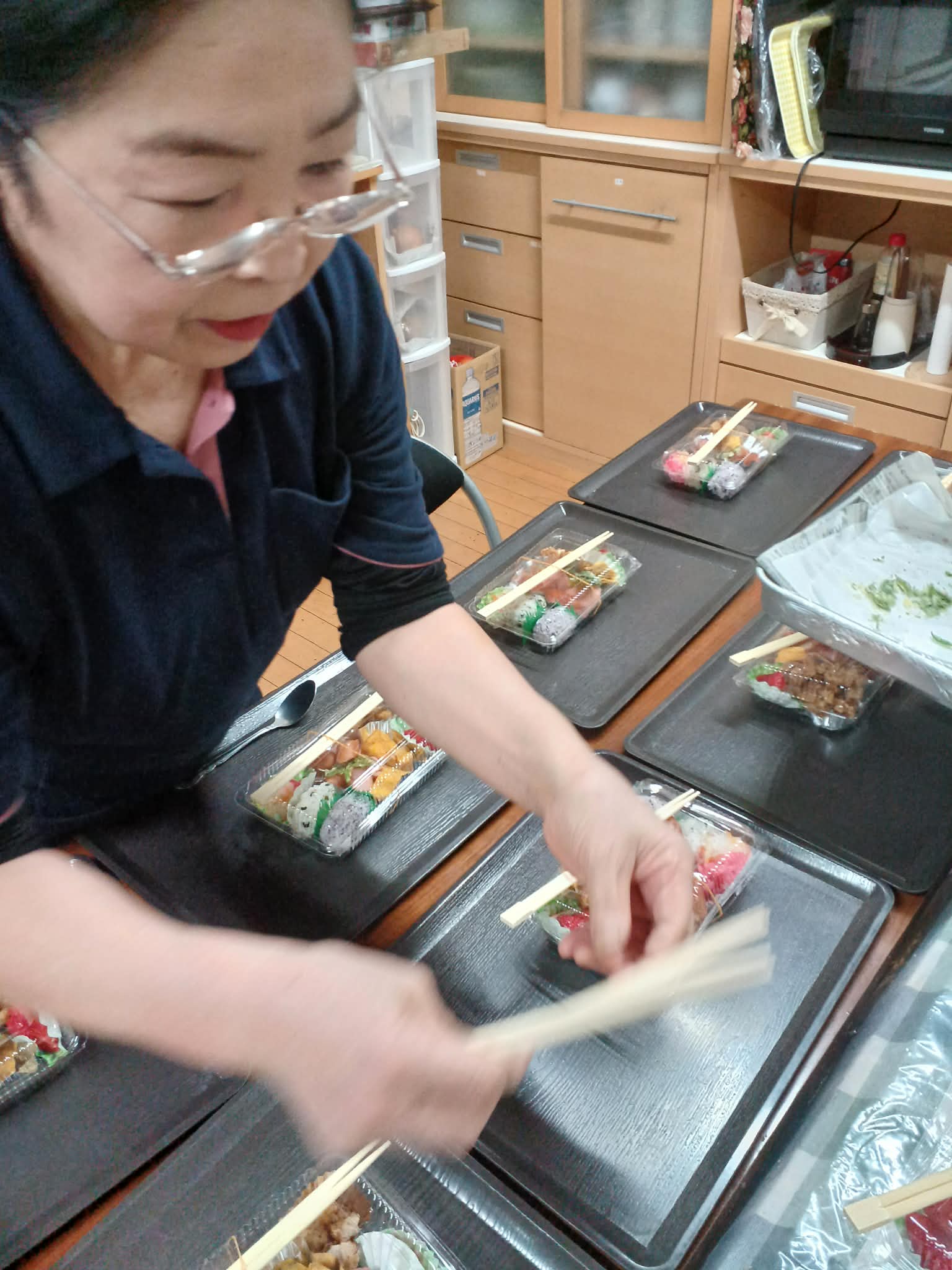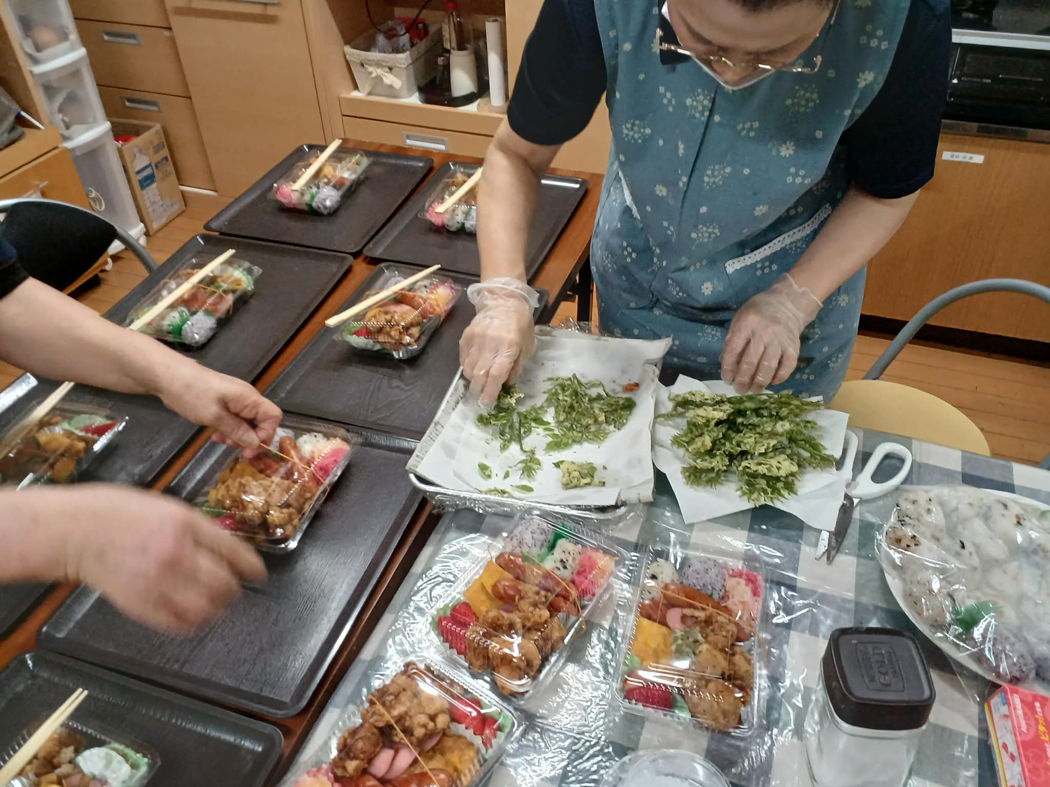 まずは、お弁当を職員の方が一生懸命に作る様子をお伝えします。
