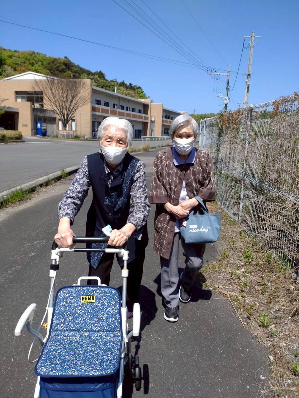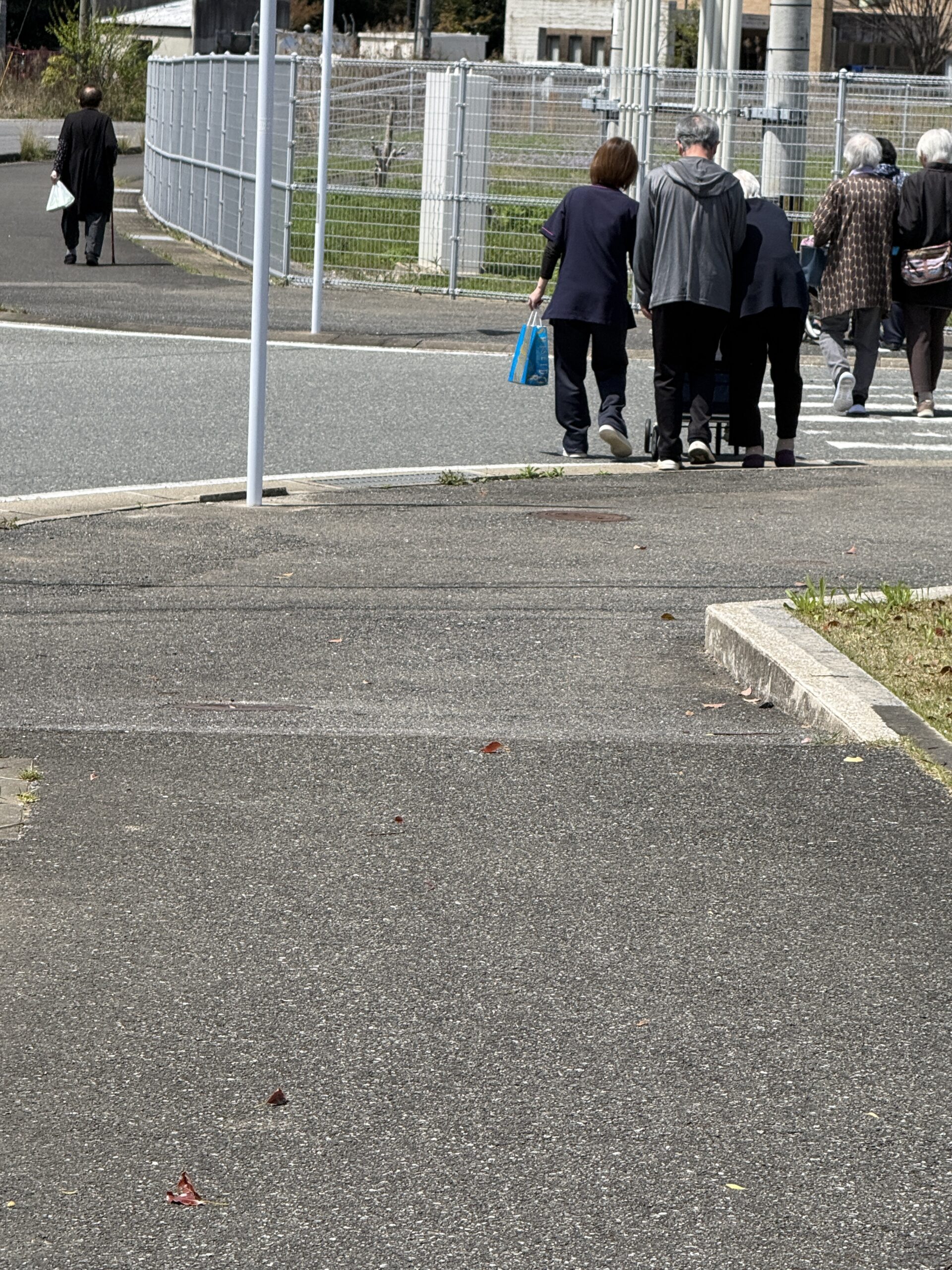 快晴の中🌞歩いていく人、車椅子で行く人、車での送迎の人(*^^*)