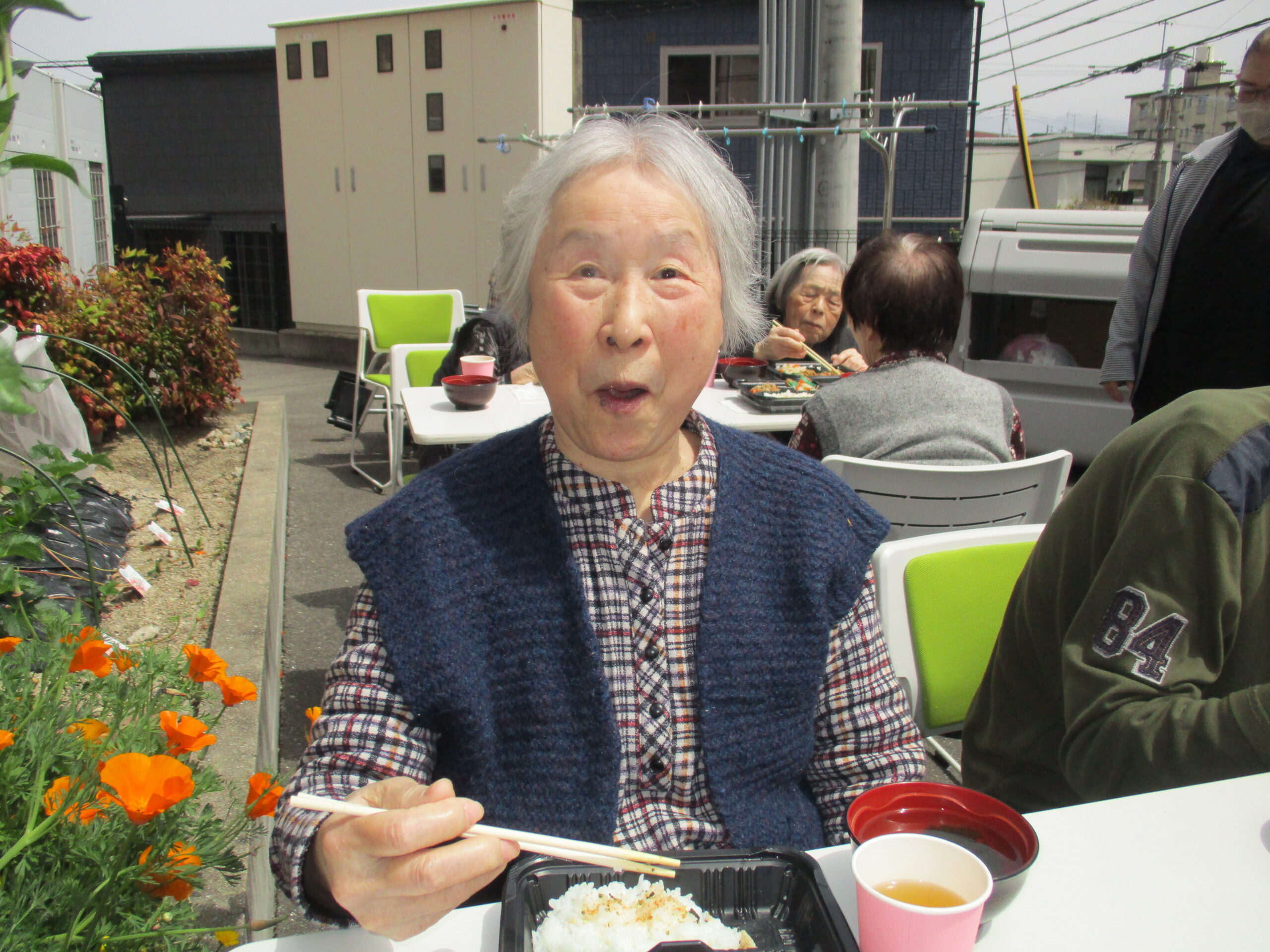 お花見にお昼ごはんにおやつ。充実した1日となり、「気持ち良かったね」「もっと歩けるようにならないと」と前向きなお言葉をお聞きすることができました😄