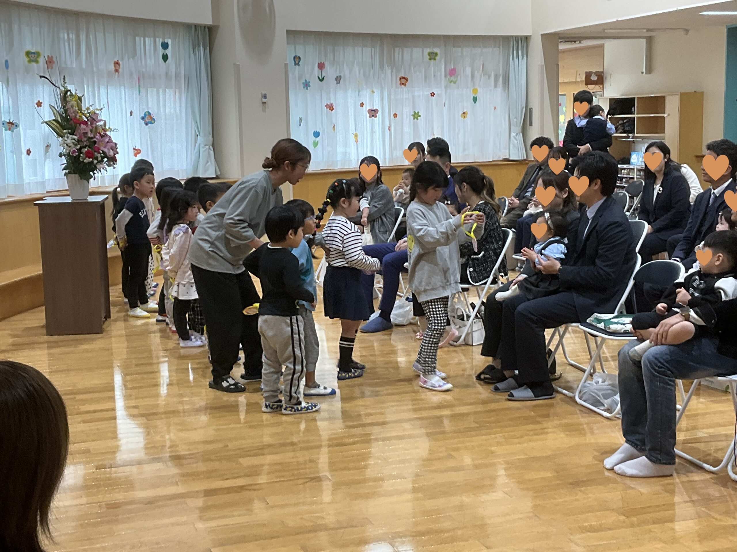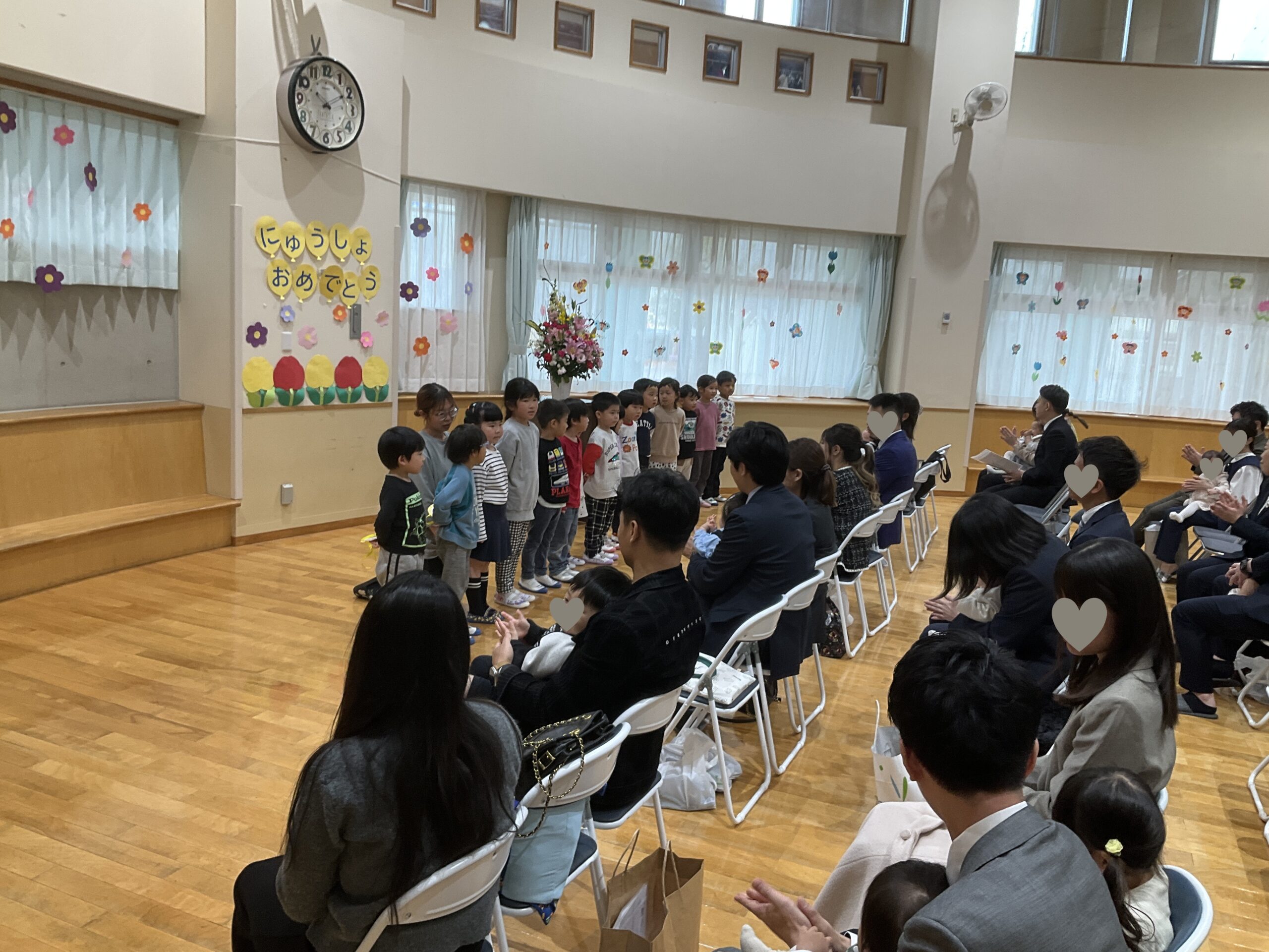 新入園児さんも保護者の方も皆さん笑顔で、とても微笑ましい光景でした。