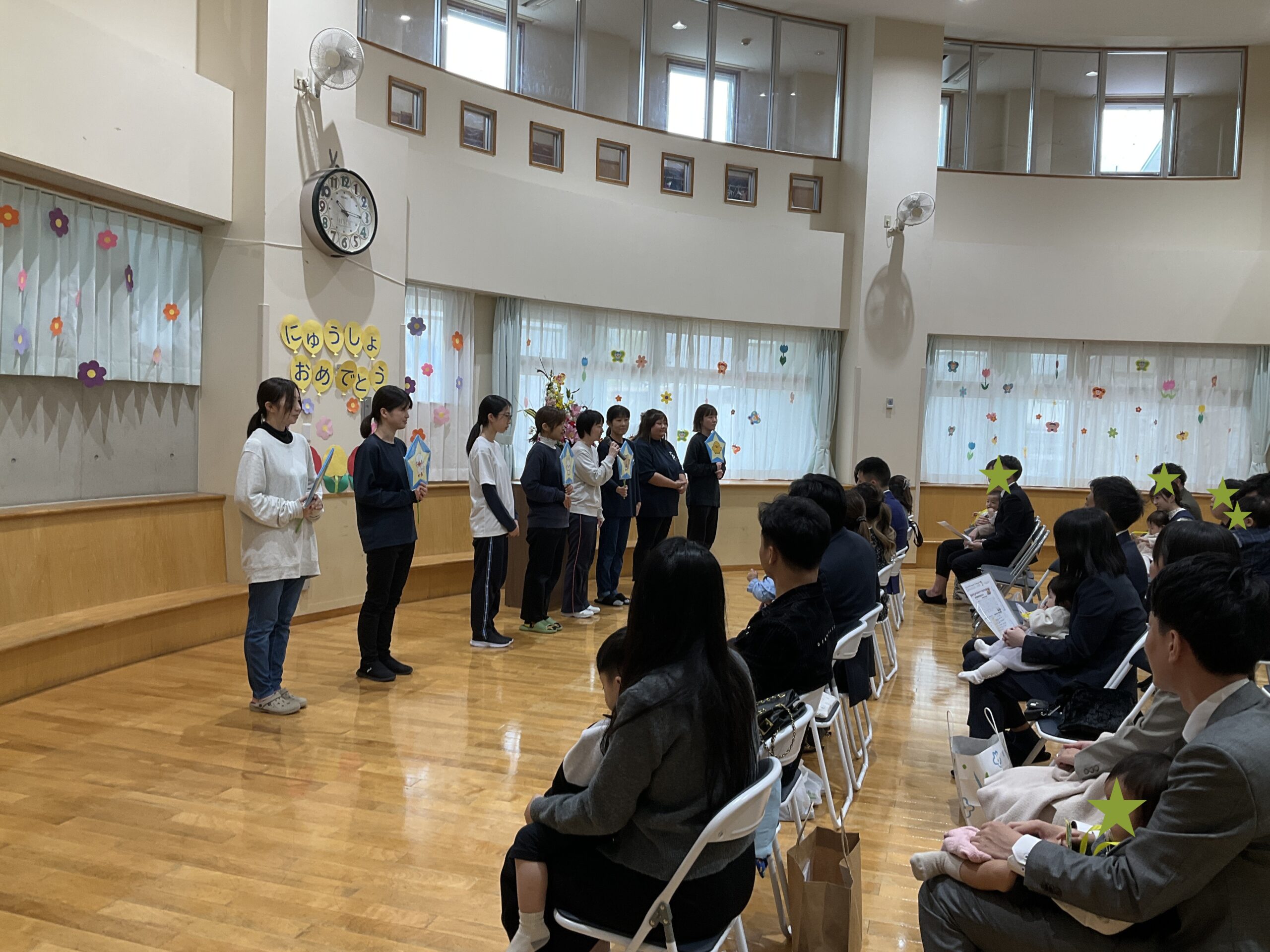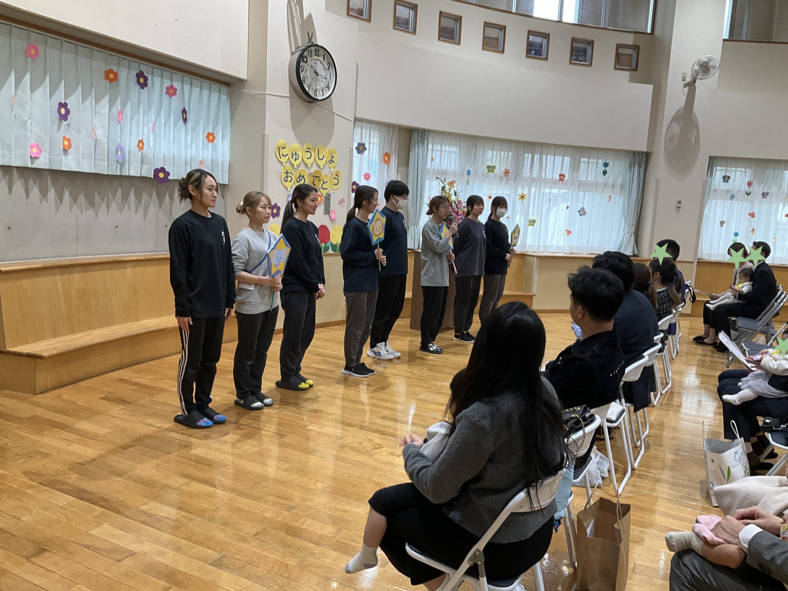 担任の先生の紹介もして、先生達からも「入所おめでとうございます!楽しく過ごしましょうね😊」と