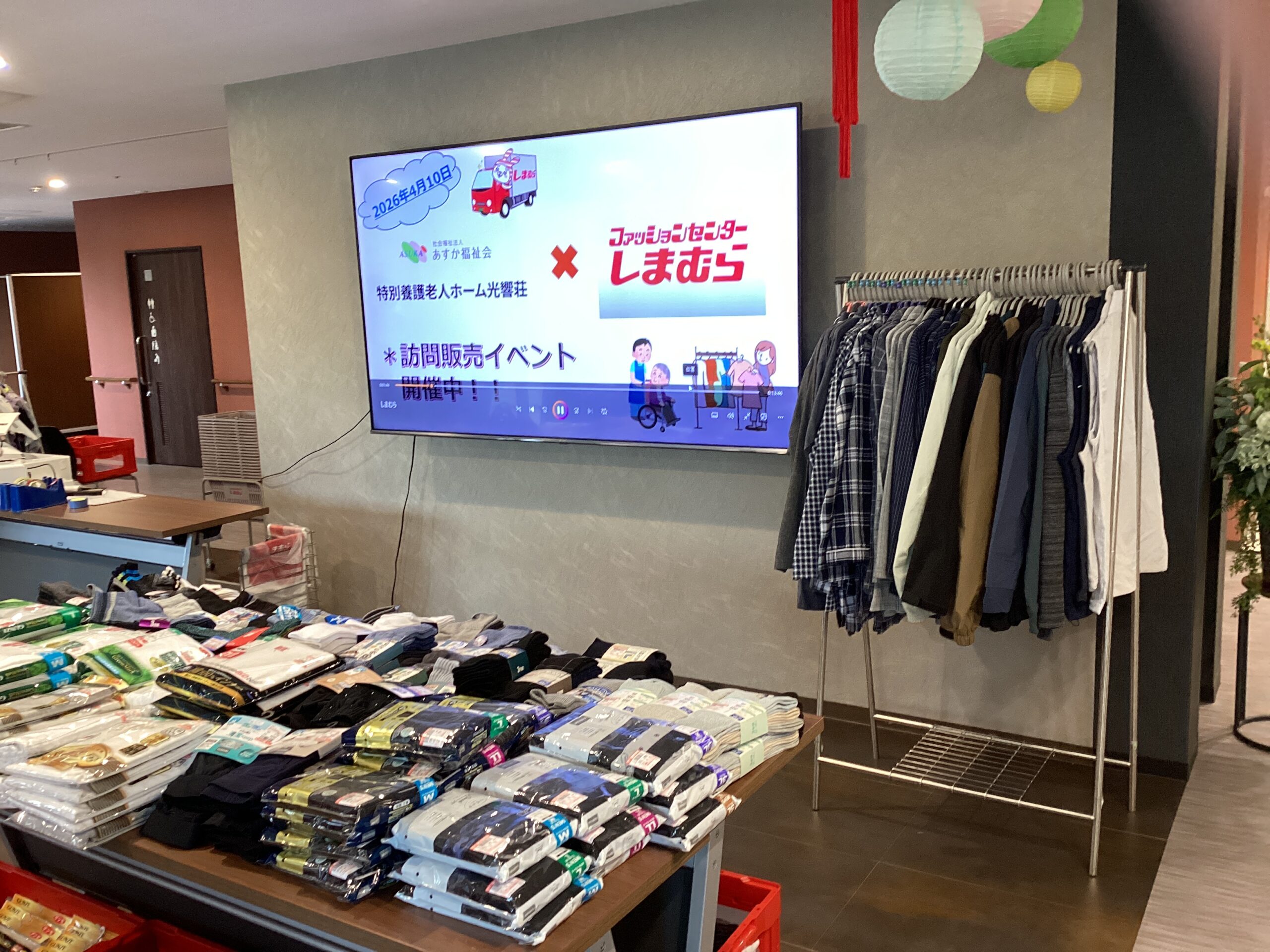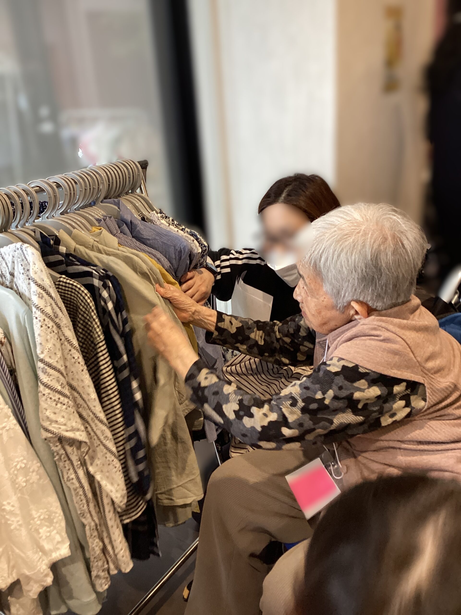 4月10日、ファッションセンターしまむら様のお力をお借りして、お買い物レクを地域交流スペースで行いました😆🎊