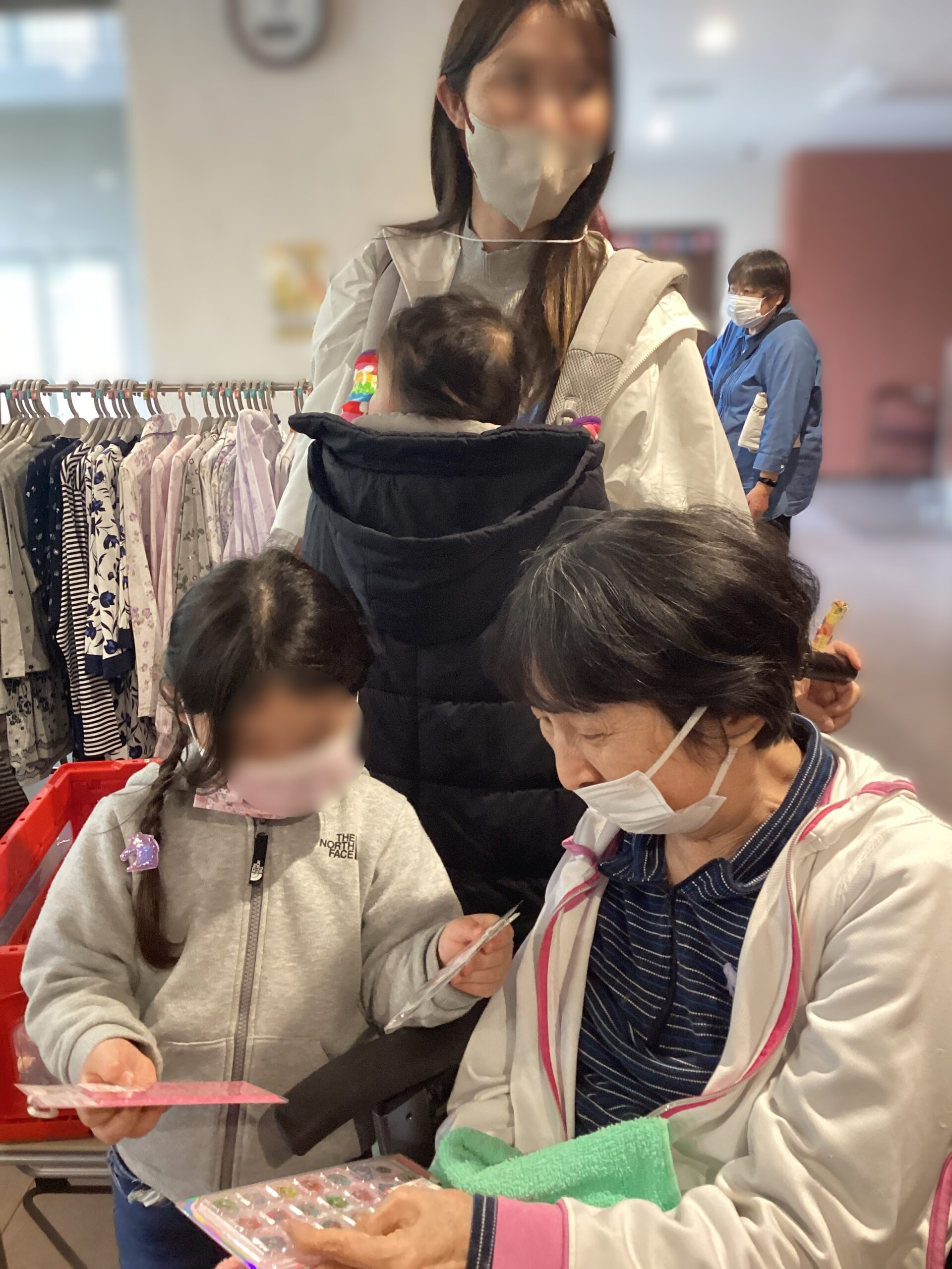 今回は小さなお子様の参加も可能にしたので、お孫様と一緒に今流行りのシールを選んだり、お孫様に笑顔で買ってあげたりしていました🛒
