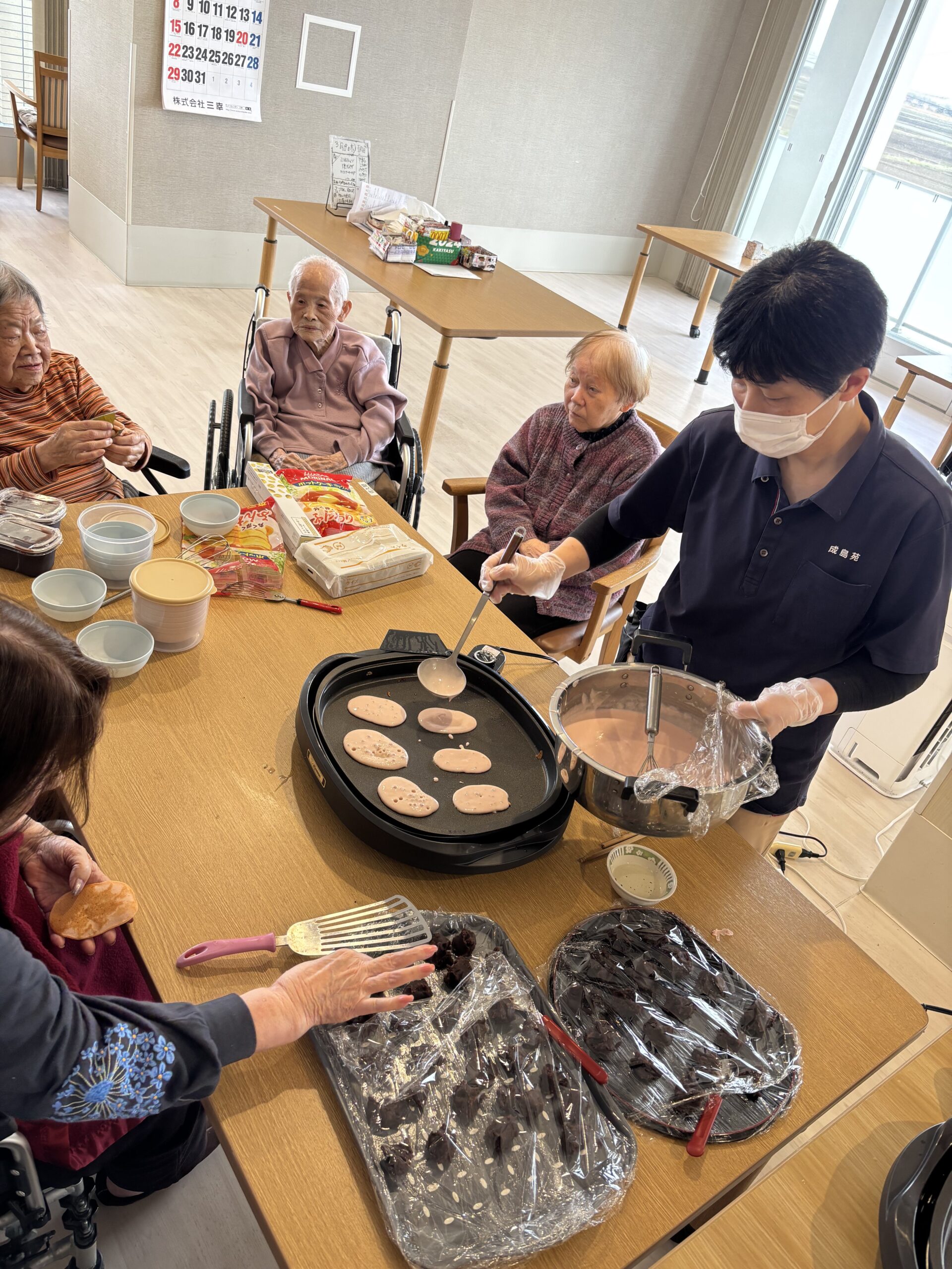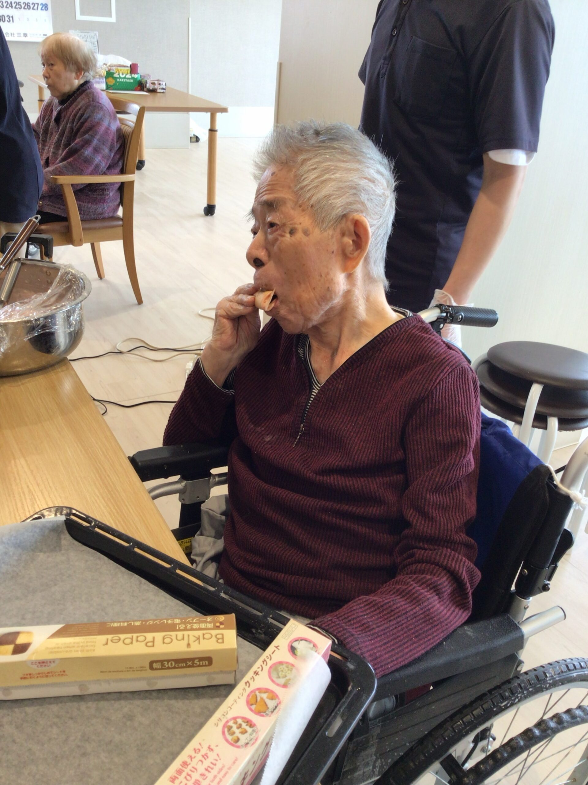 「桜餅って言うから、お餅なのかと思ったよ」と残念そうに話された利用者様もいましたが、フロアで作成している様子をみて「これはこれでいいね。みんな食べられるし。お餅みたいなものだね」と笑いながら話されていました。