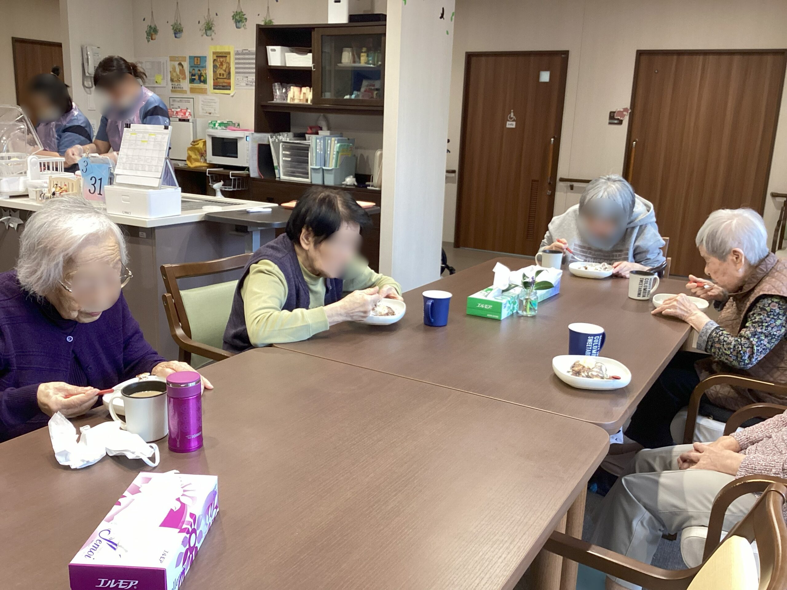 沢山運動した後だったので、いつもはお話が絶えないご利用者様達も、無言で召し上がっていました😅