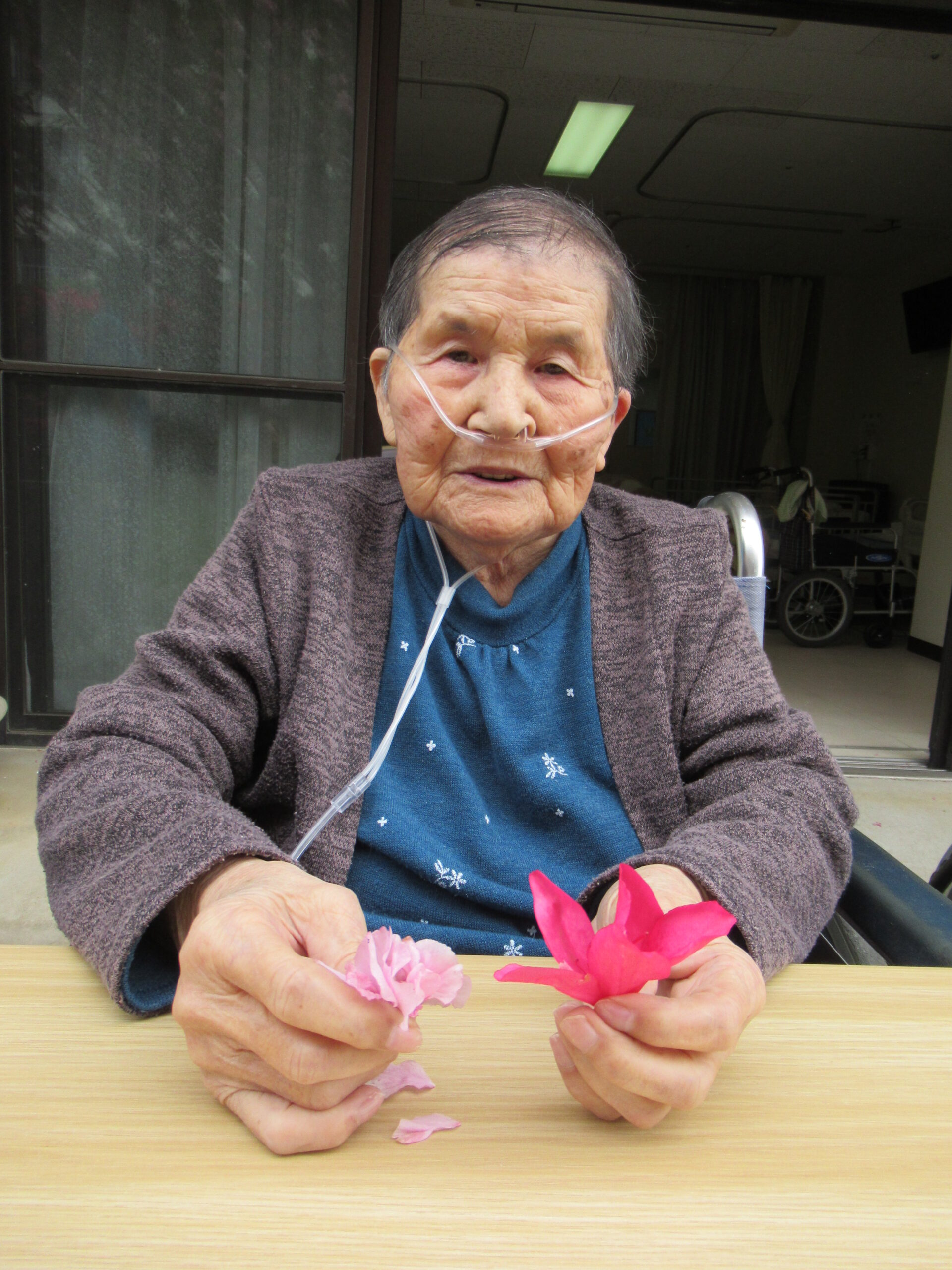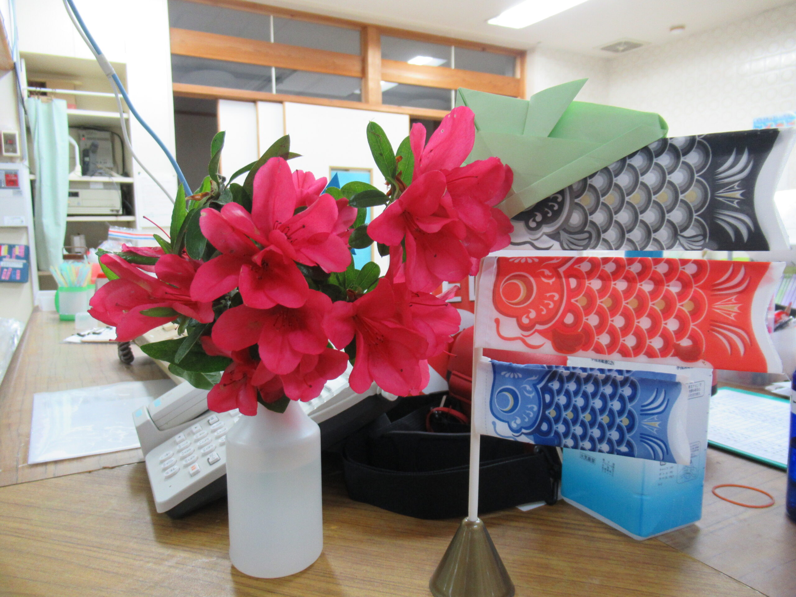 撮影時に持っていたツツジの花は 施設内に飾りました❀赤色が映えますね♡