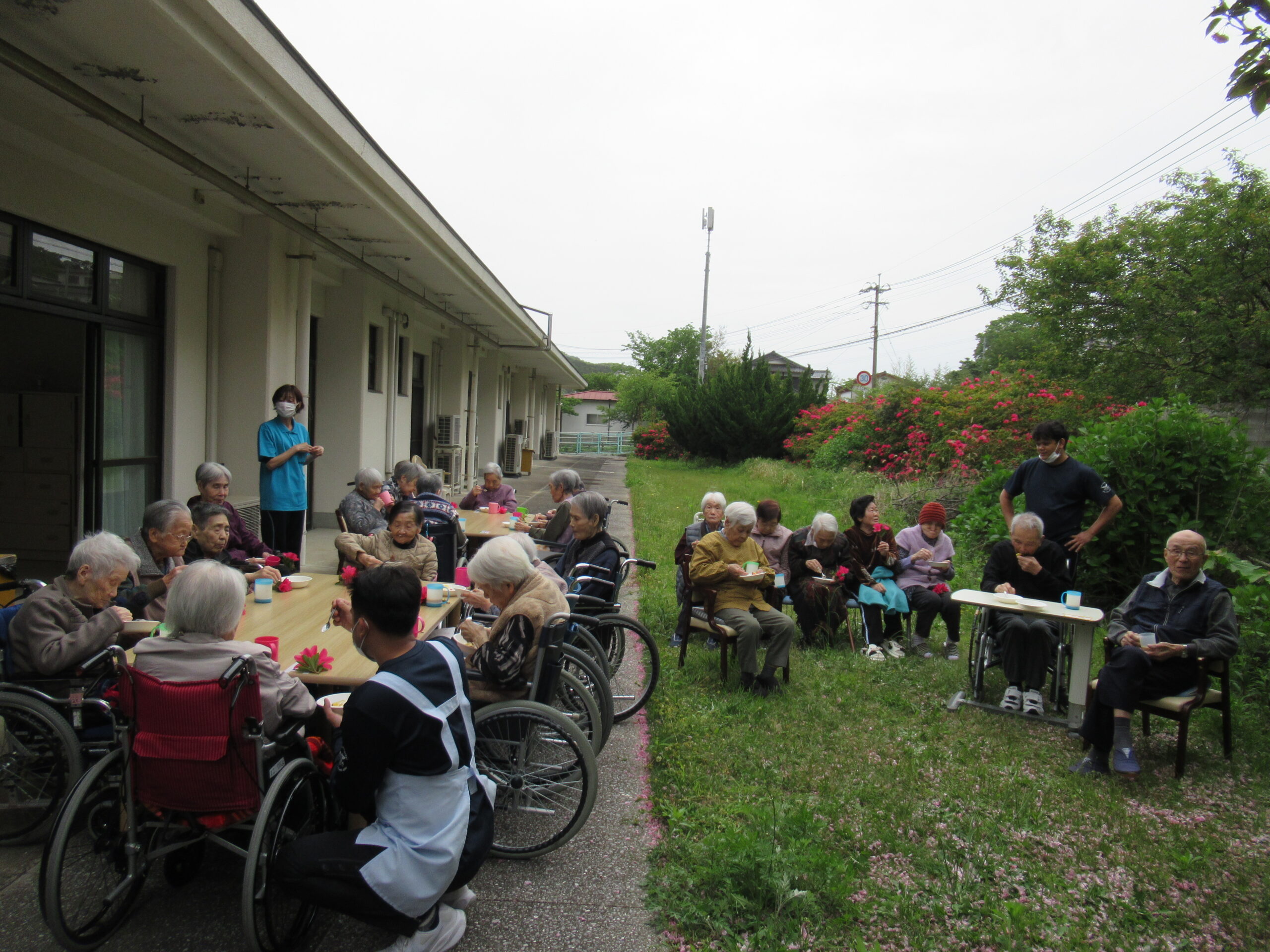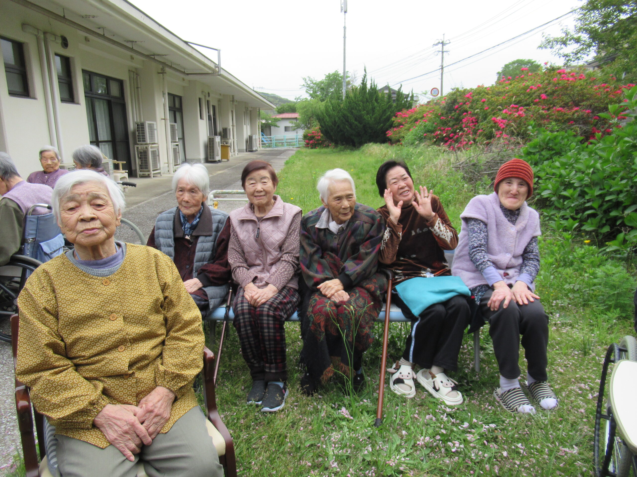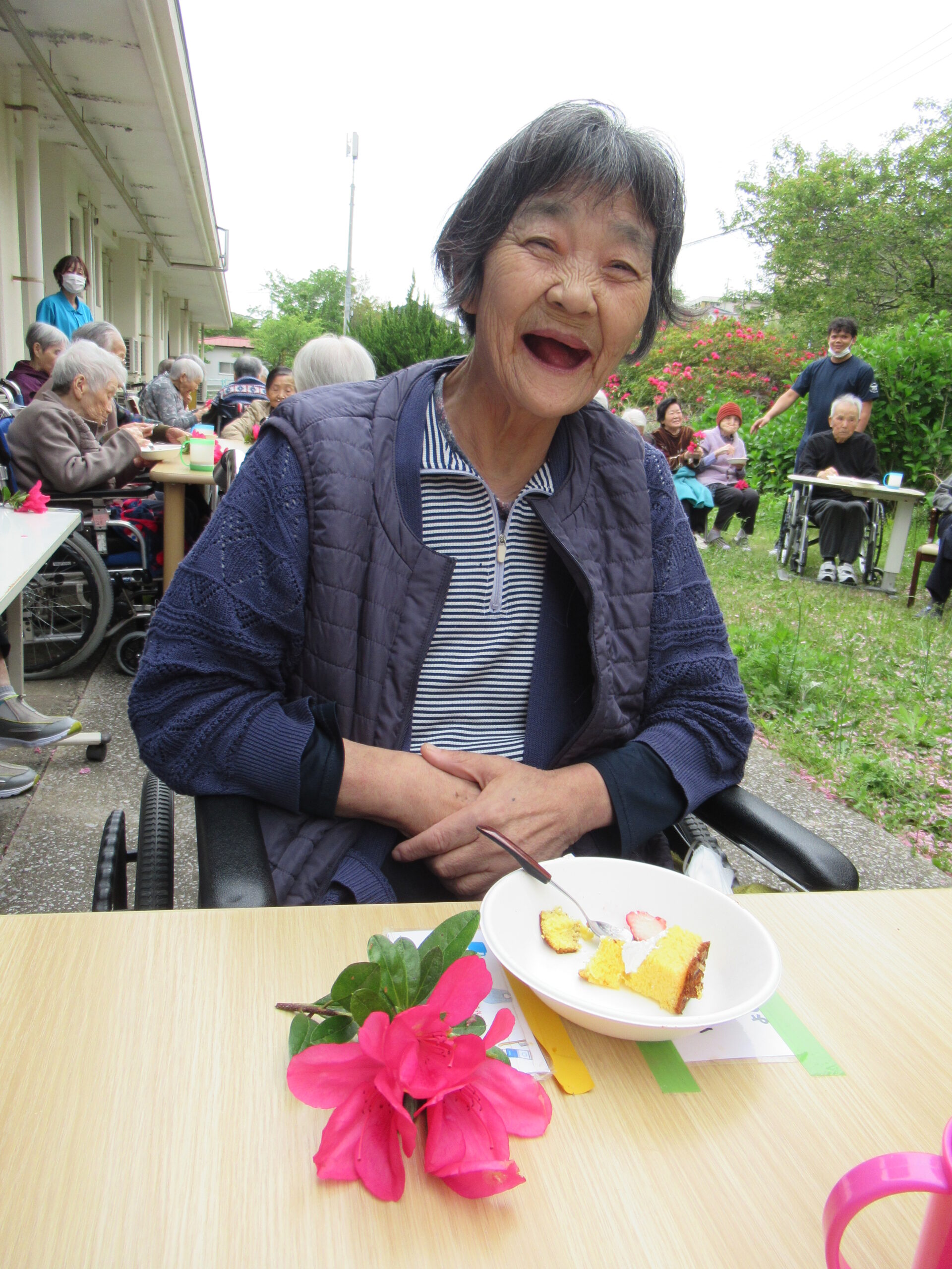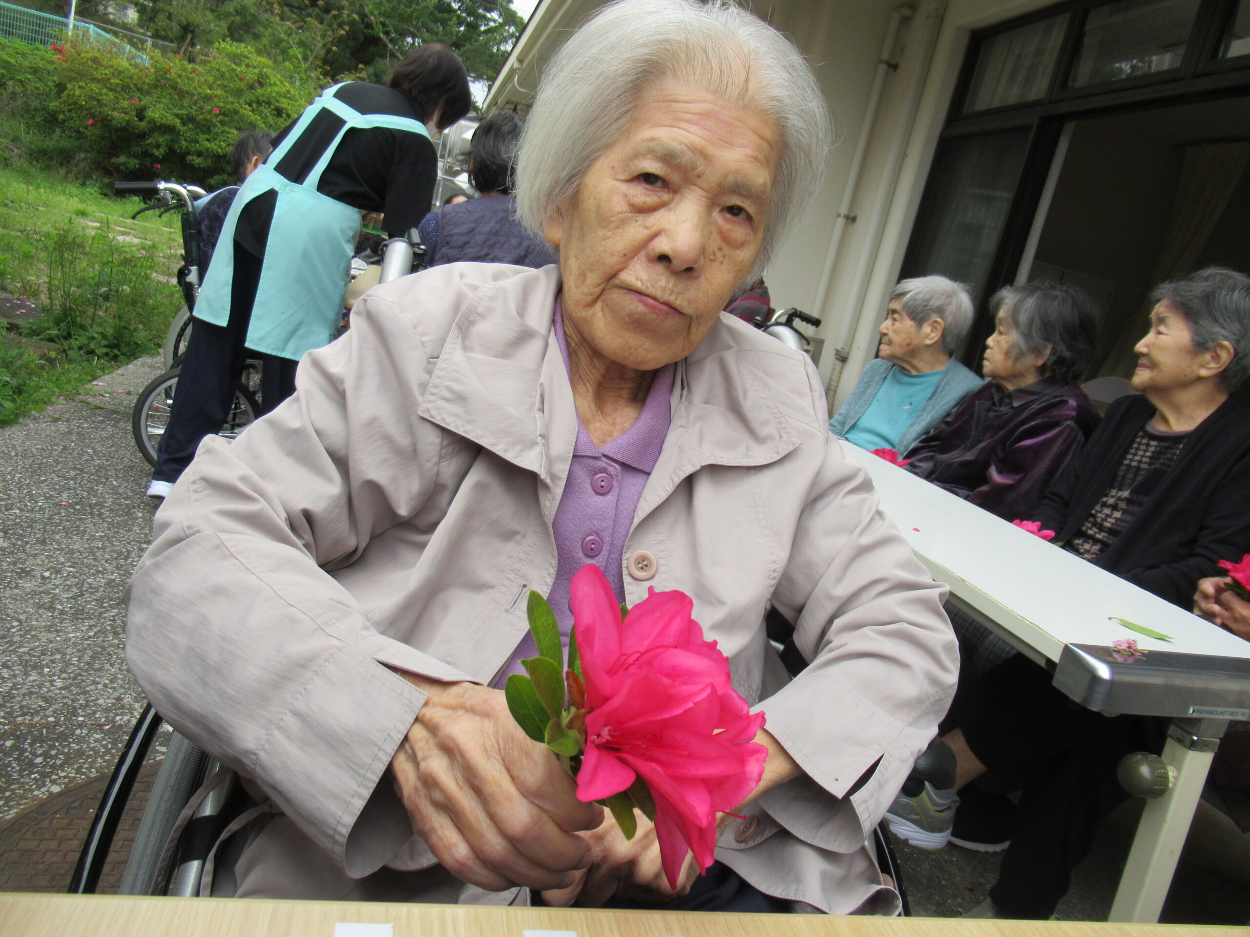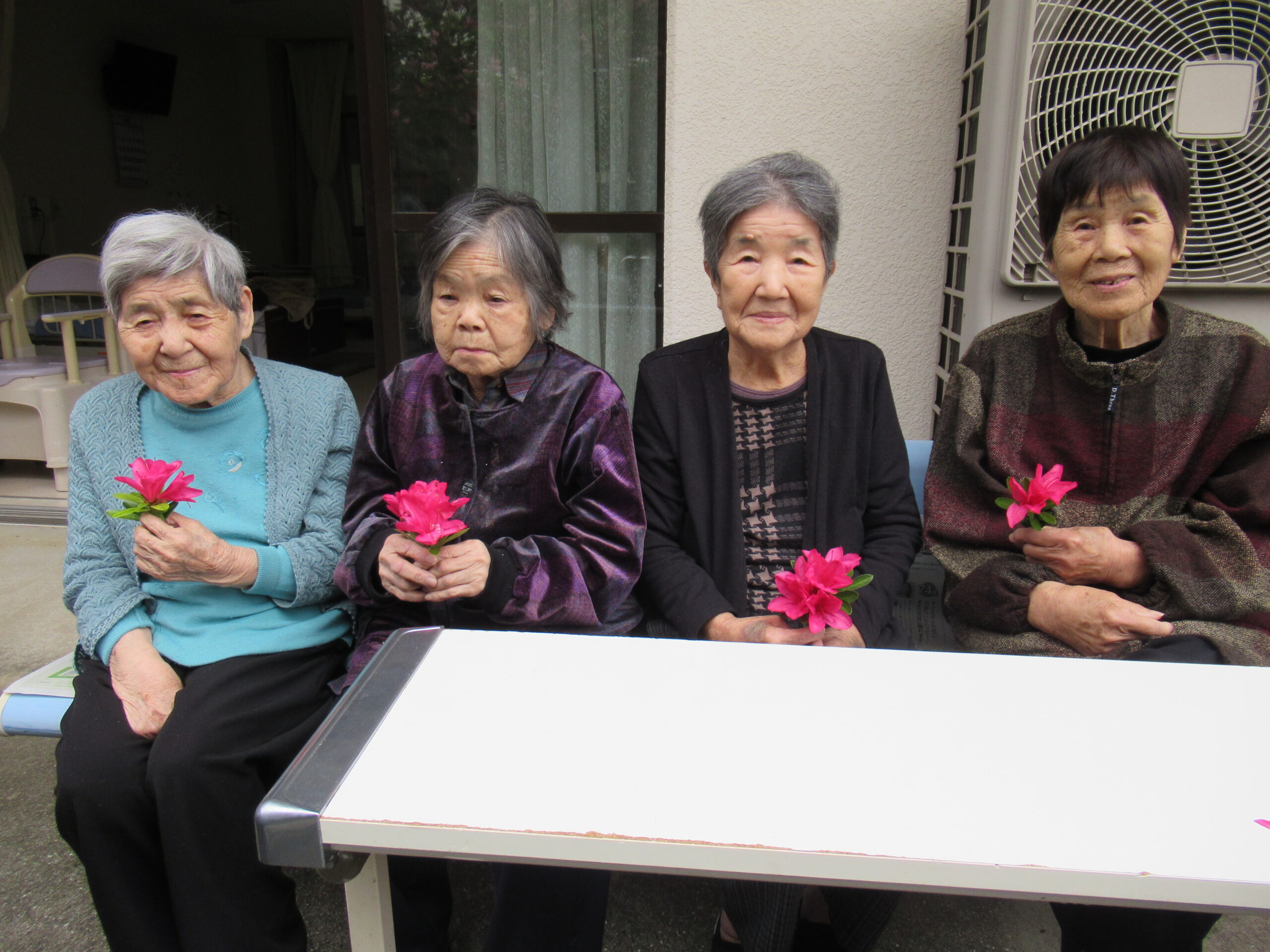 施設中庭にて 八重桜&ツツジの お花見会をいたしました❀
