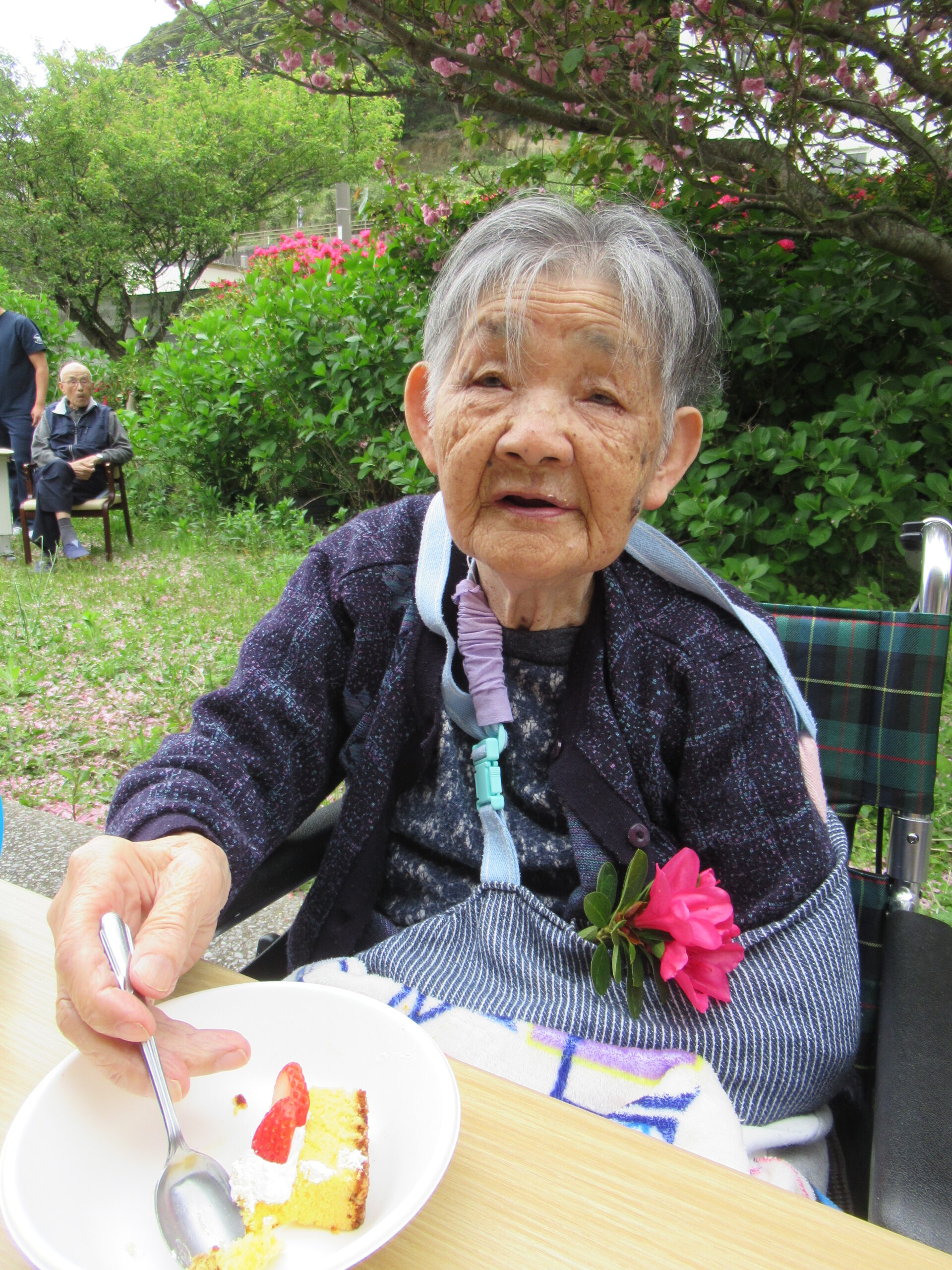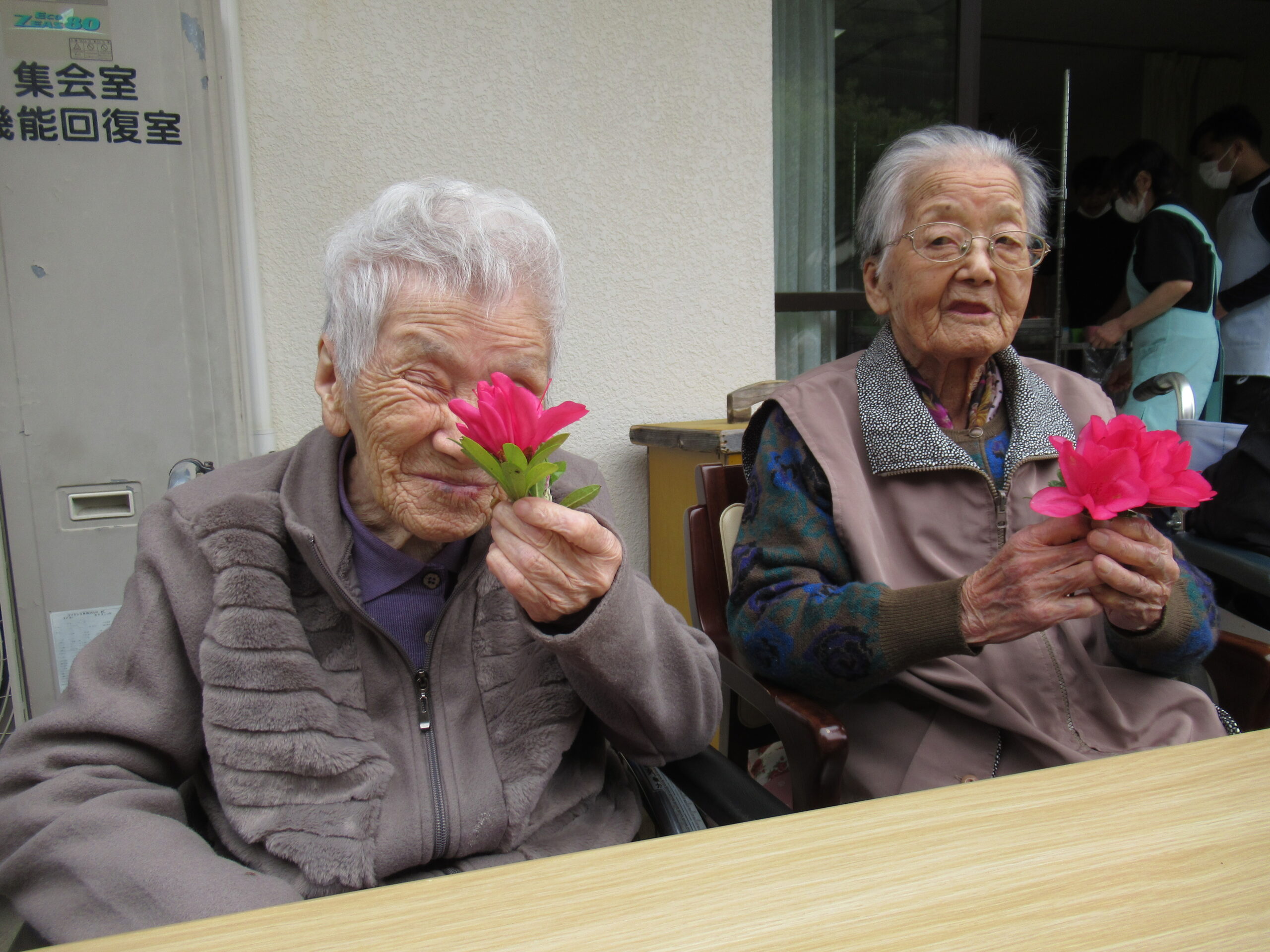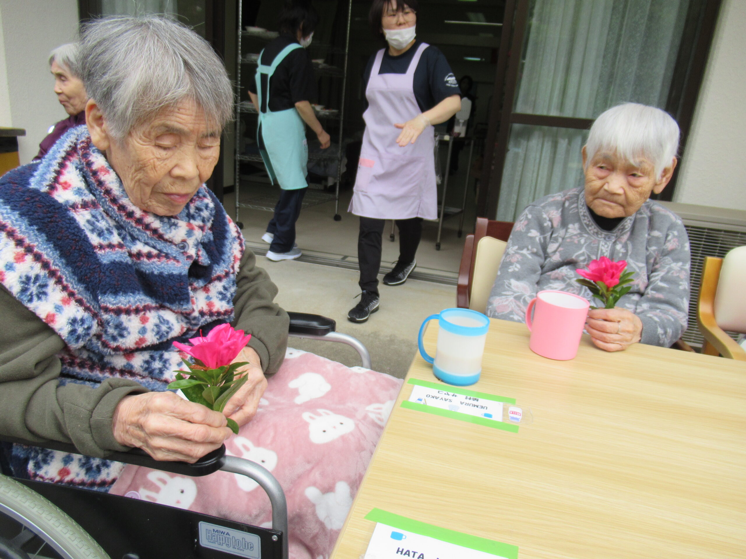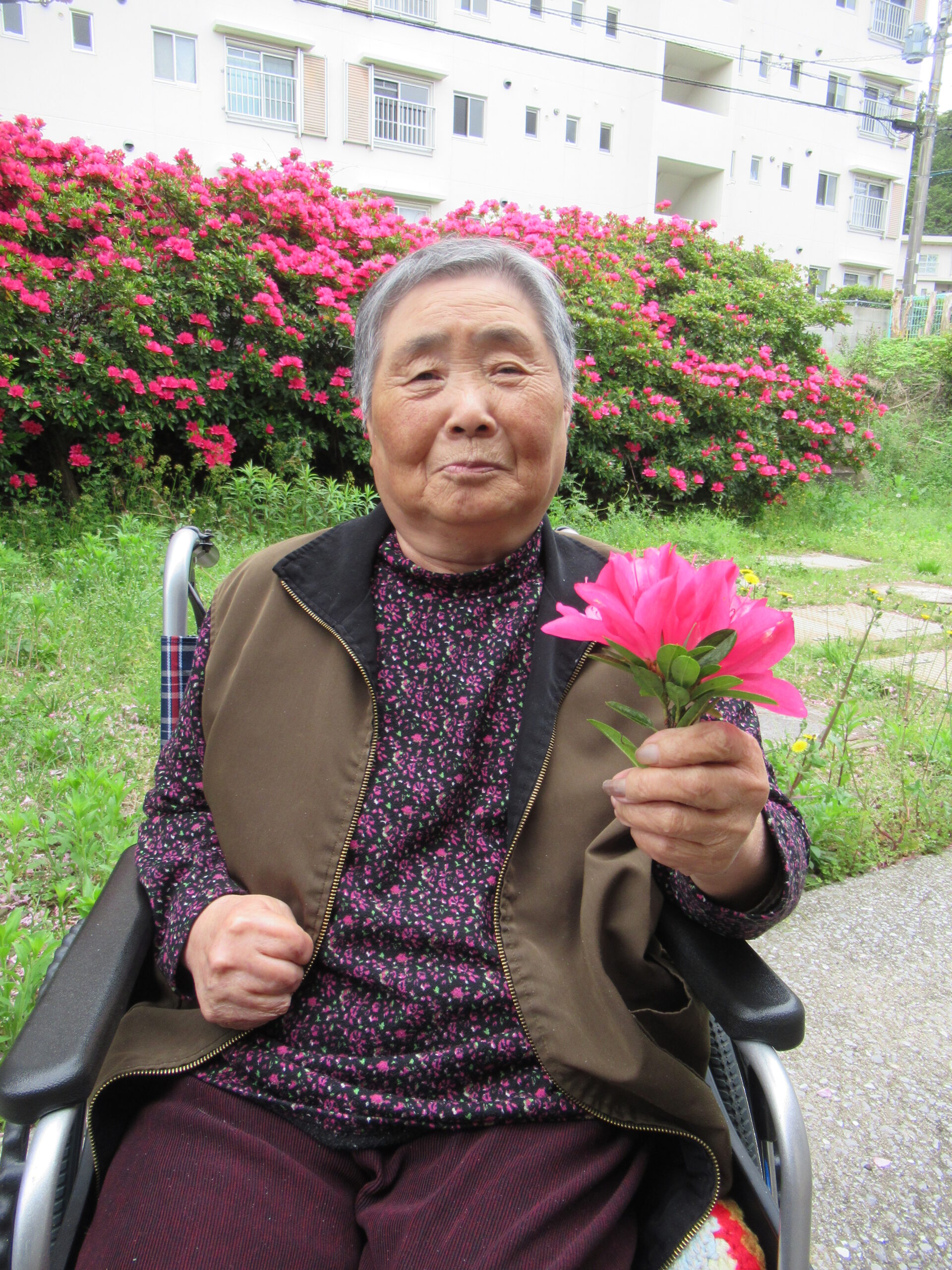 施設中庭にて 八重桜&ツツジの お花見会をいたしました❀