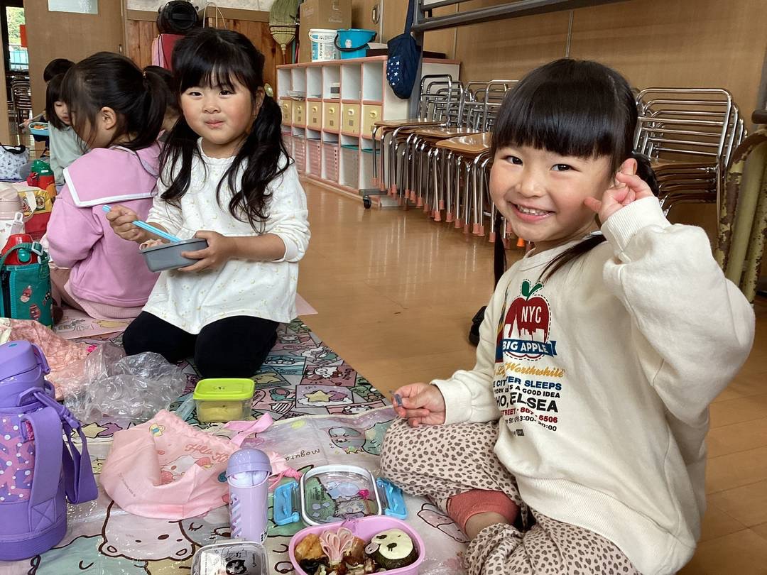 残念でしたが、子どもたちは大好きなお弁当ということで、園に戻ると