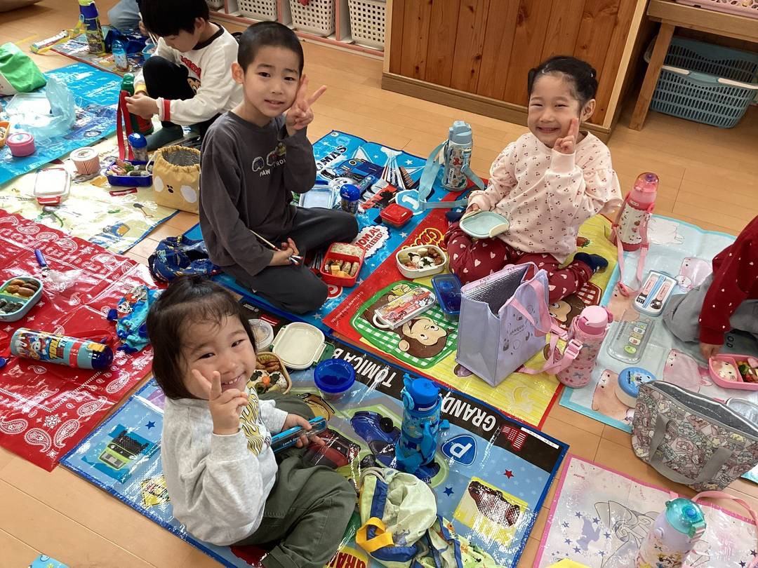 ニコニコでお弁当の準備をして、お弁当を見せあって食べていました🍱