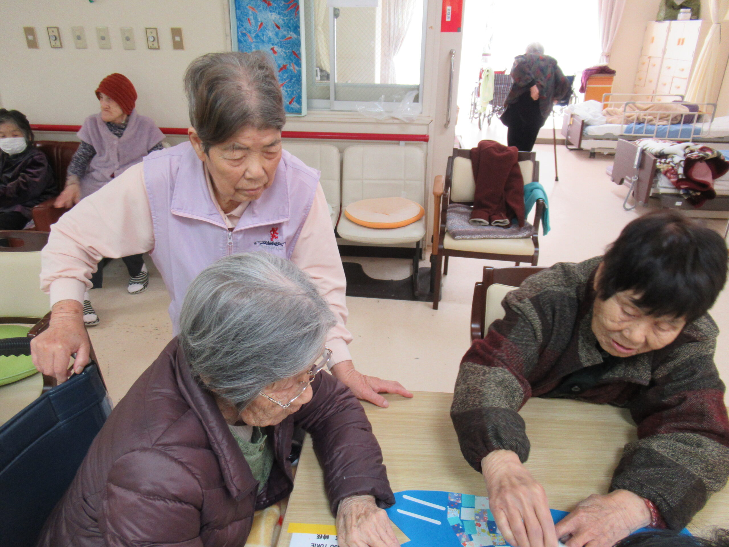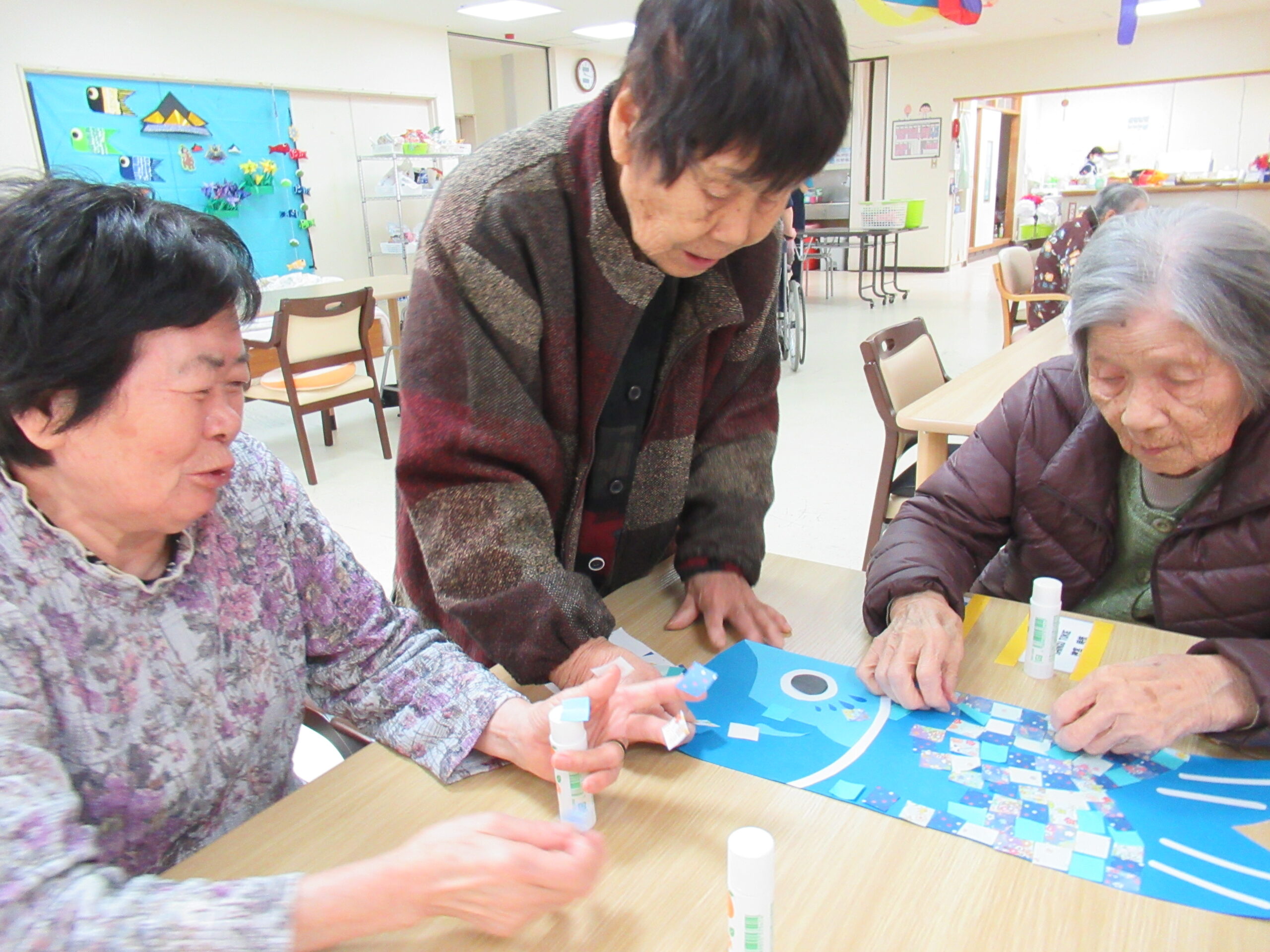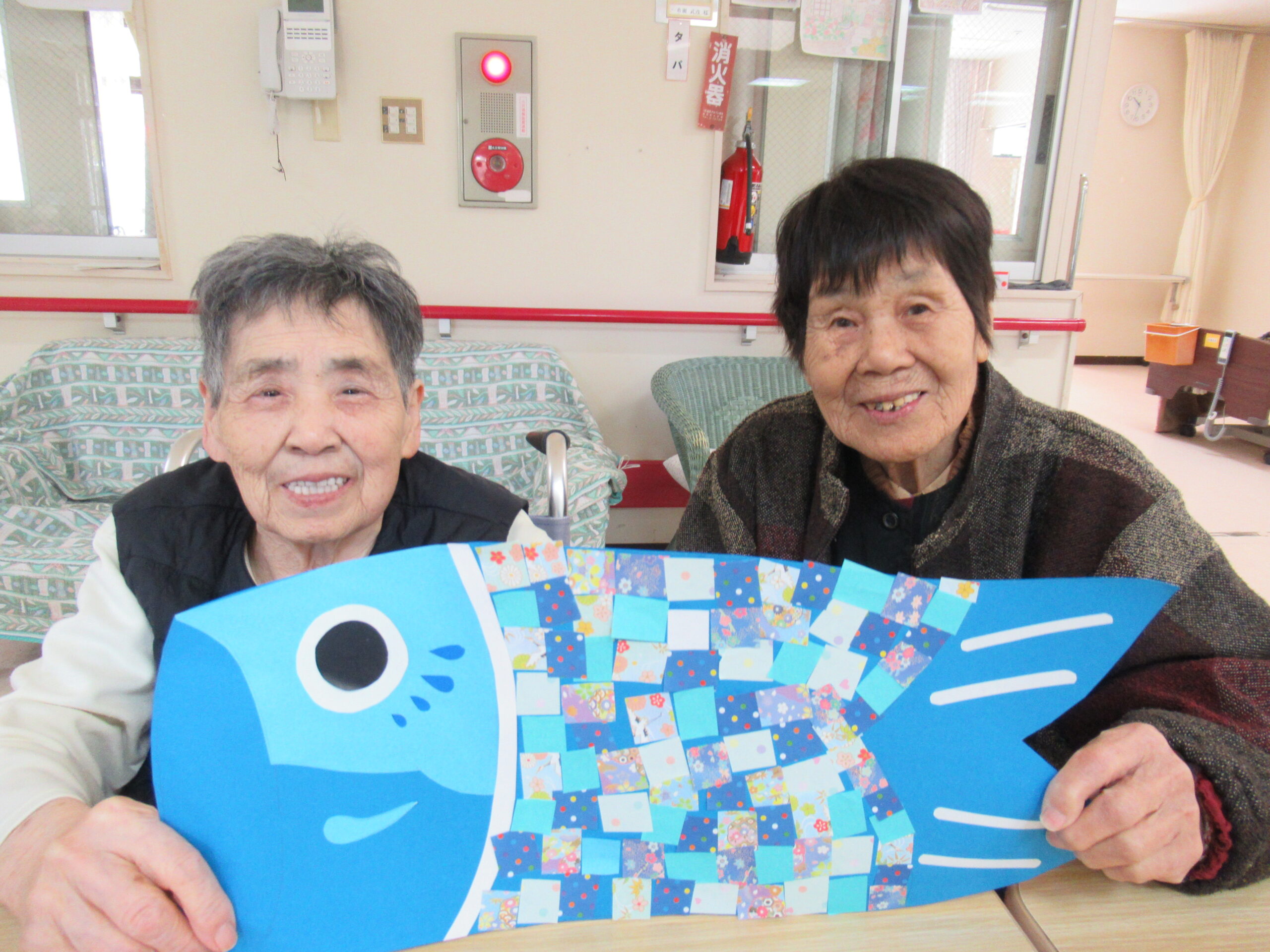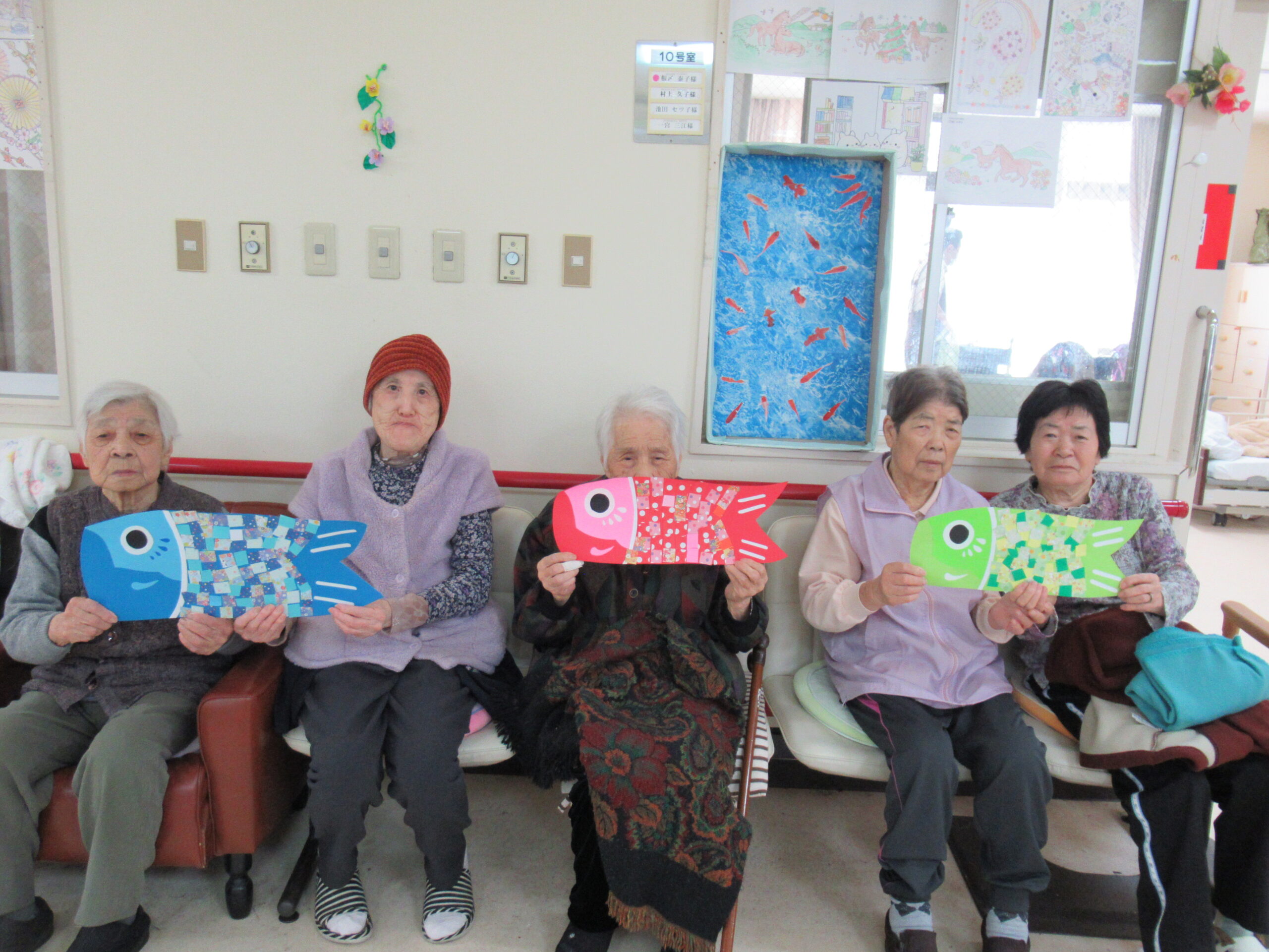 貼り絵班の皆さんには 鯉のぼりのうろこをペタペタと貼ってもらいました!