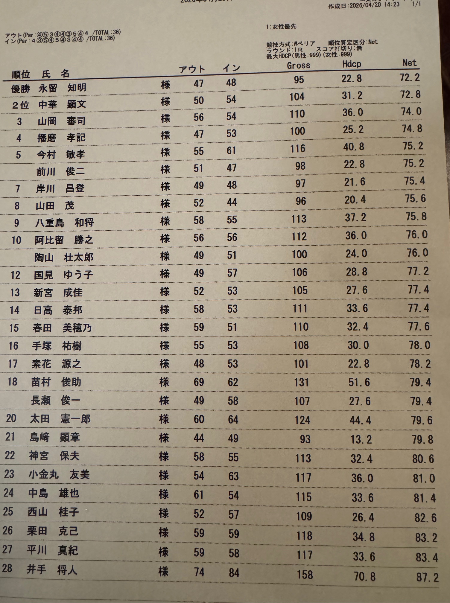 ゴルフ部長は1回交替です。
